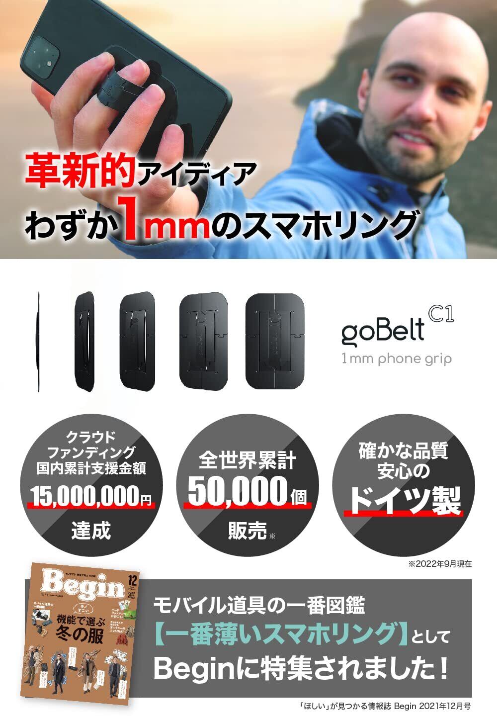 スマホリング goBelt C1 黒 薄型 1mm ワイヤレス充電対応 スマホスタンド ドイツ製 ブラック 1個