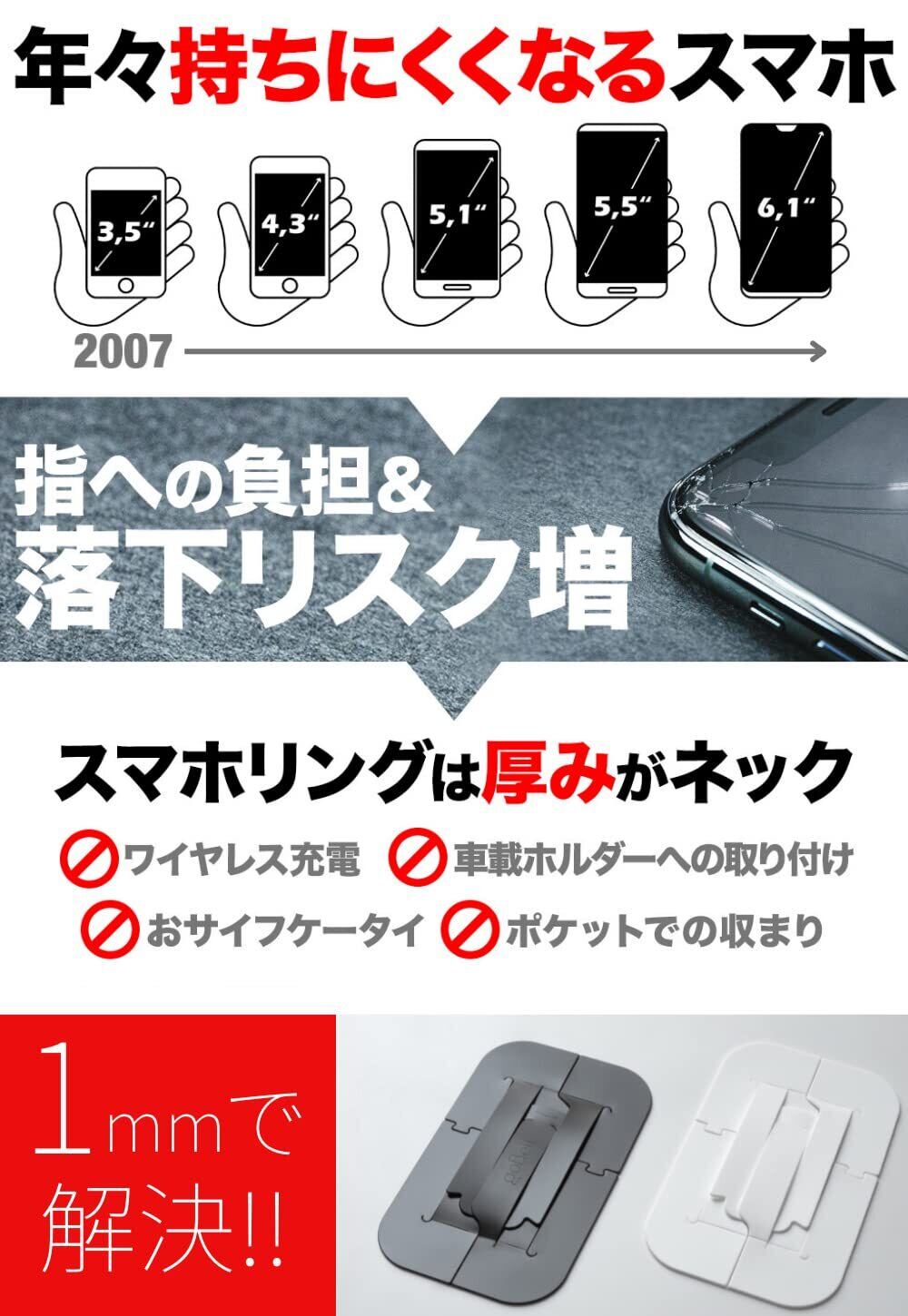 【超薄型スマホリング&スタンド】革新的アイディアで1mm、1gを実現。クラウドファンディングで1,500万円以上、全世界累計50,000個以上販売されている話題の極薄スマホリング