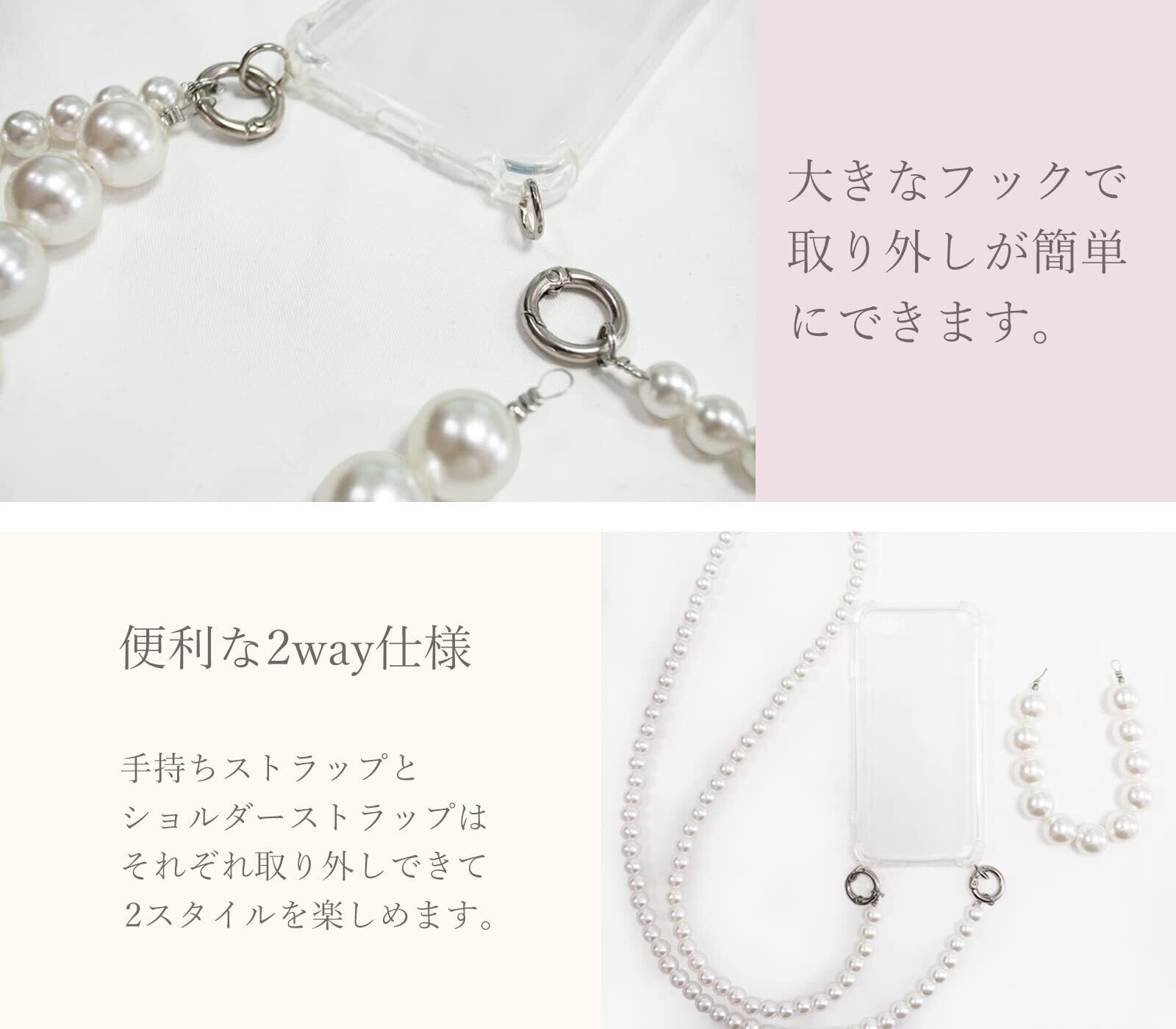 【特徴】パールストラップ/ケース部分透明・ソフト仕様/ストラップ取外し可 ※製品の仕様上鋭利な部分がございます、パーツの取り外し等の際は手を挟まないよう十分ご注意ください。