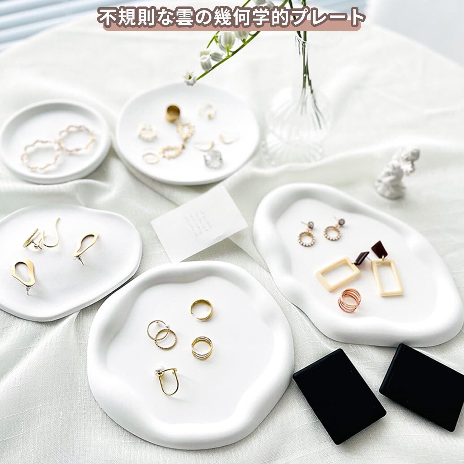 【写真撮影に最適】ジュエリートレイは、写真撮影の小道具として使うのにとても適しています。 シンプルで清潔感のある白いトレイは、ジュエリー、宝石の美しさをより際立たせます。