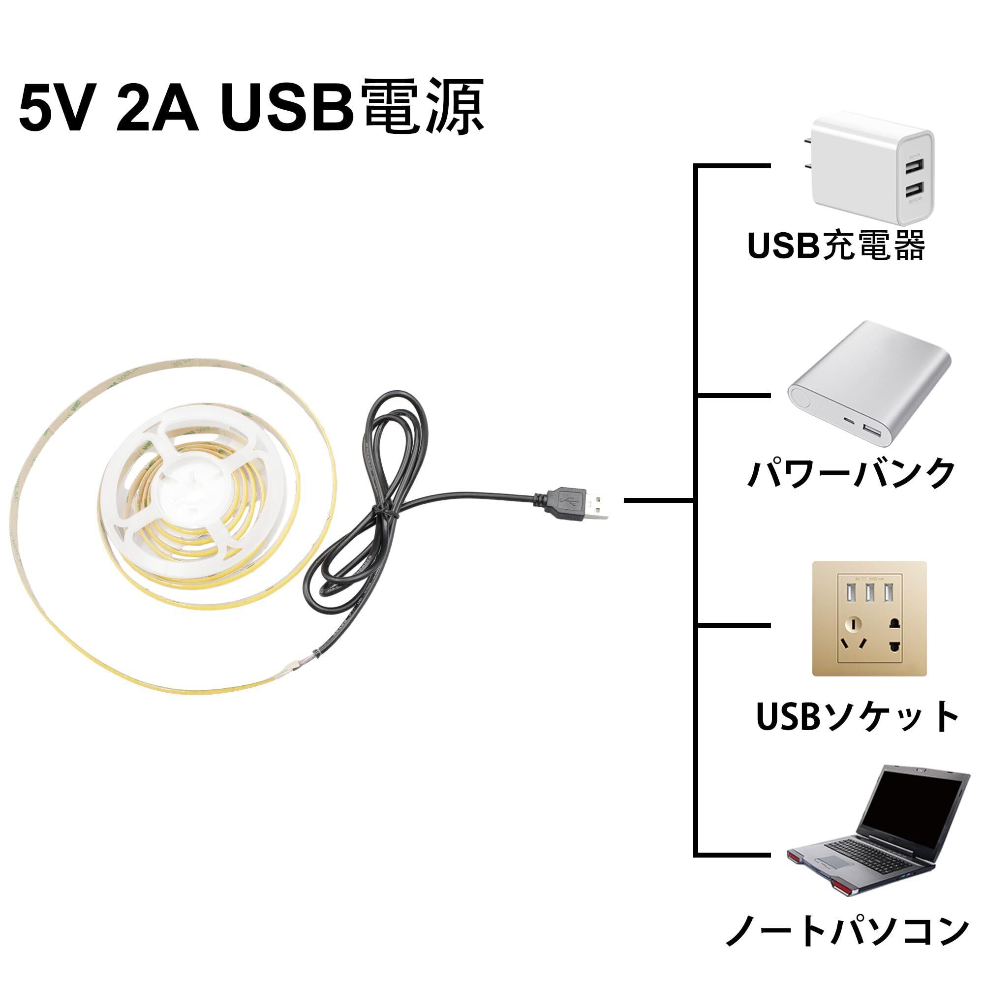 【特価セール】USB COB LEDテープライト2m 5V 温白色 4000K 高輝度 高密度 フレキシブル LEDテープライト および 切断可能 取付簡単 工具不要 非防水 店舗 室内 ホーム装飾用 DIY | gsmshop
