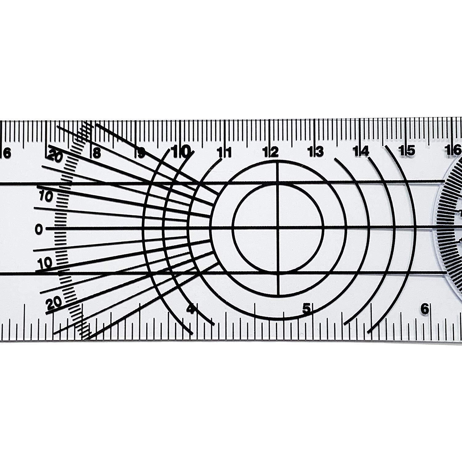 角度や長さおよび可動域の計測に使用します。 分度版は0度を起点とし上下を問わず最大で180度(誤差±1度)まで計測が可能です。