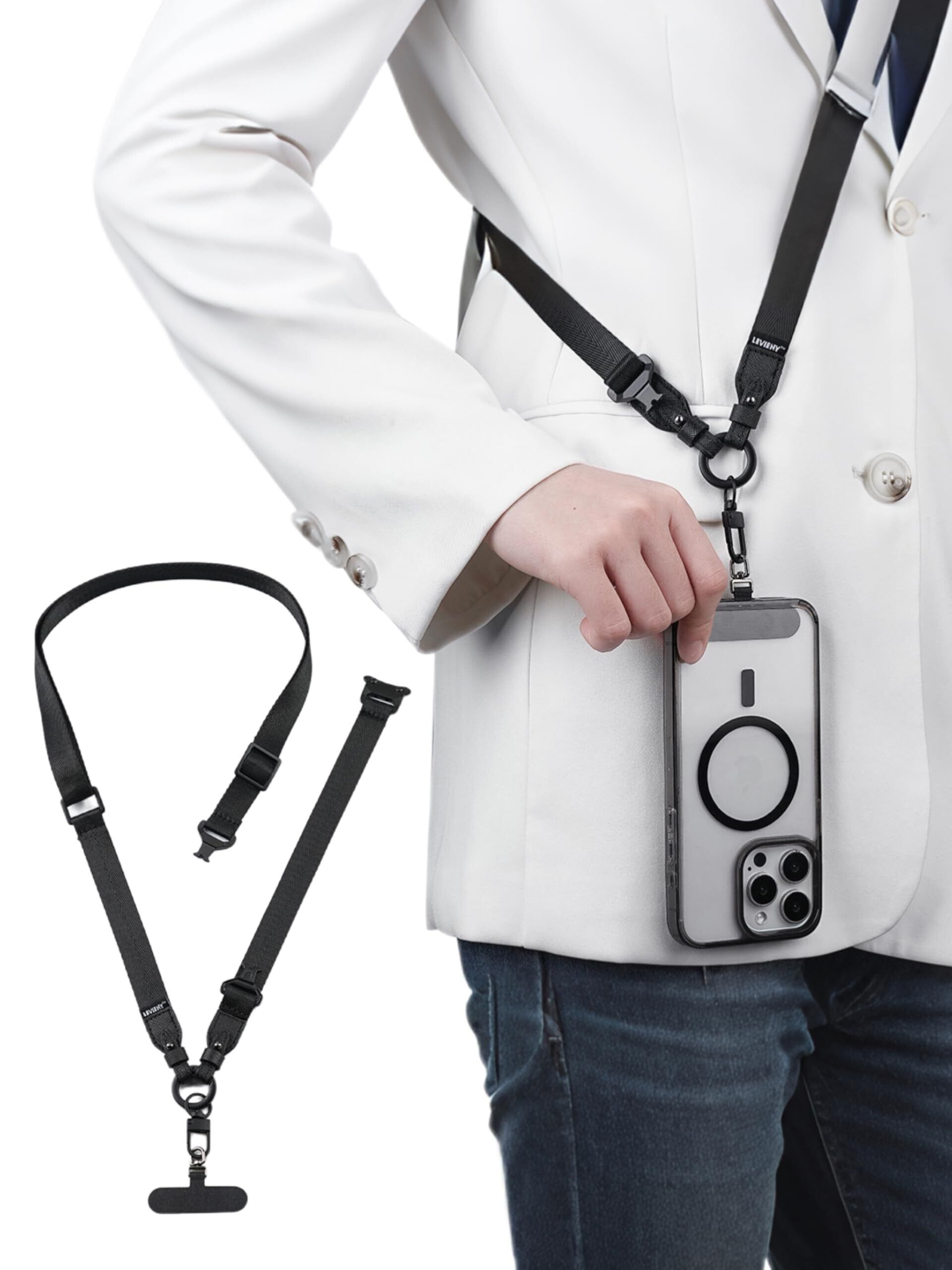 [Levieny] スマホ ストラップ (多用途・丈夫さ) 手首掛け/斜めがけ/首掛け 多用途ネックストラップ 360°回転可能&二段式取り付け設計 材料 2025新開発【金属バックル】 スリ対策/防水/落下紛失防止 ナイロン製長さ調節可能 日常/スポーツ/登山/釣り対応 iPhone&Android全機種対応