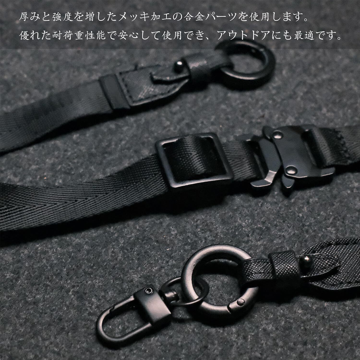 【多機能・自由なカスタマイズ】 長さ60~84cmの調節可能ストラップで、斜め掛け・首掛け・ショルダー使いを自由に選択。両端のフックは鞄や小物(鍵、IDカード、水筒など)に瞬時着脱可能。ハンズフリーで買い物・旅行・スポーツ中も便利!