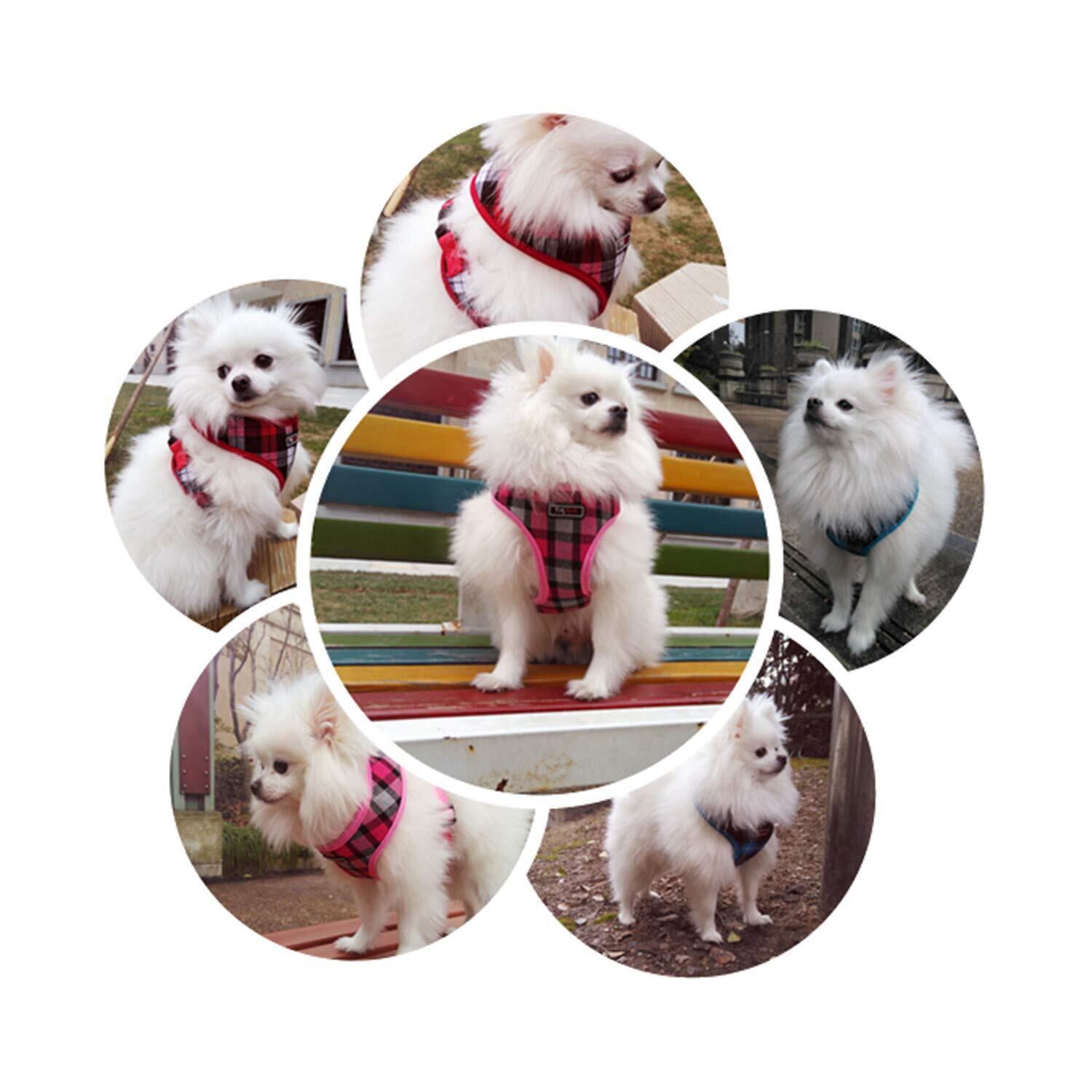 【素材&通気性がいい】:表は100%ポリエステル素材で、チェック縞も上品に見えます。丈夫で耐久性もいい犬 ハーネスです。裏に通気性の良いクッションメッシュ素材を使っています。ワンちゃんには優しくしています。夏になっても大丈夫です。