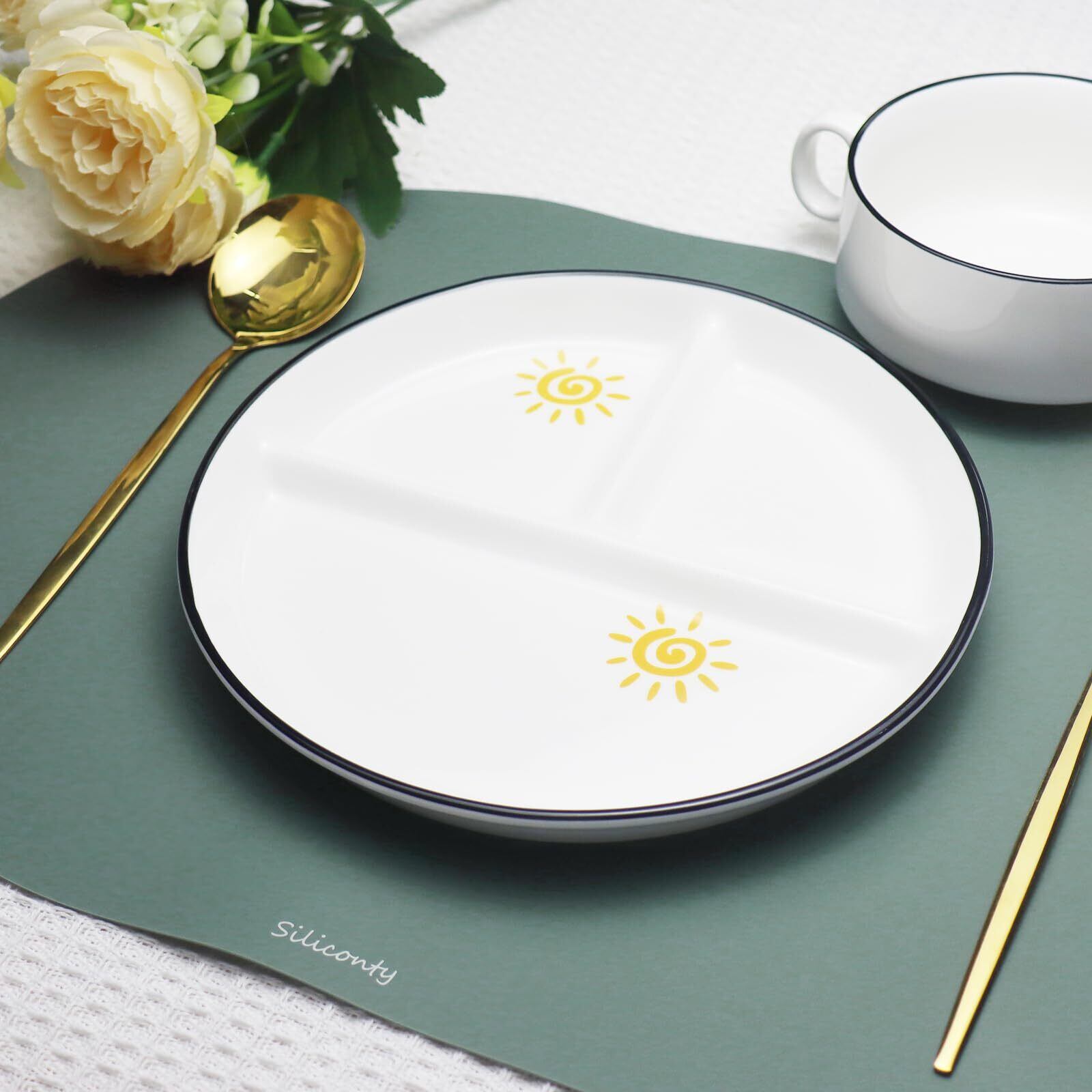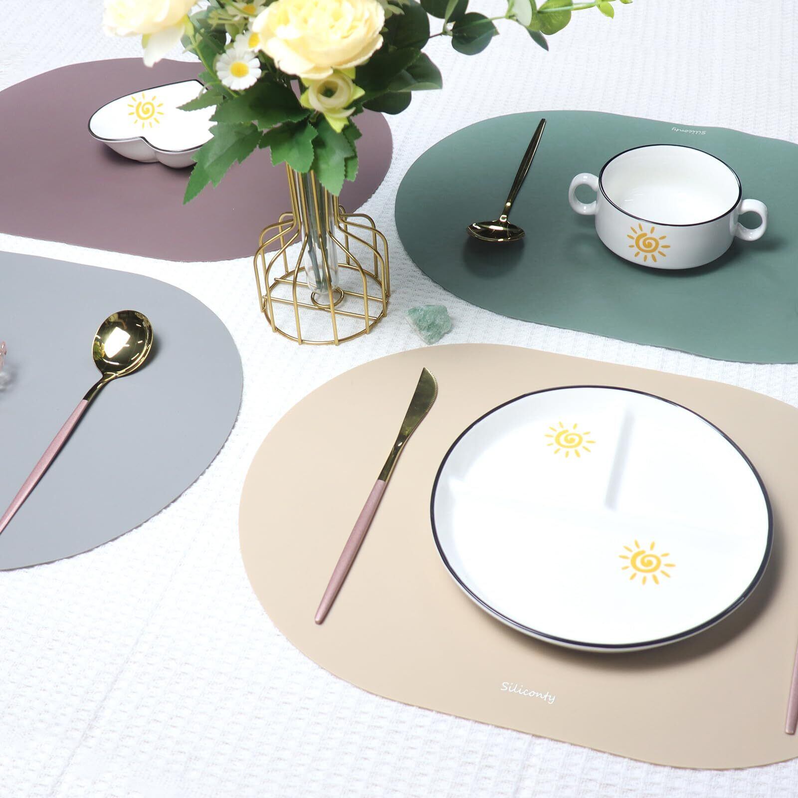 【サイズ・カラー・形】 サイズ:約30cmx40cm、カラー:グレー/緑/茶/杏(2枚セット)、材質:シリコン、形状:楕円形 シンプルで洗練されたデザインのシリコンランチョンマット、どんな食卓にもぴったり。