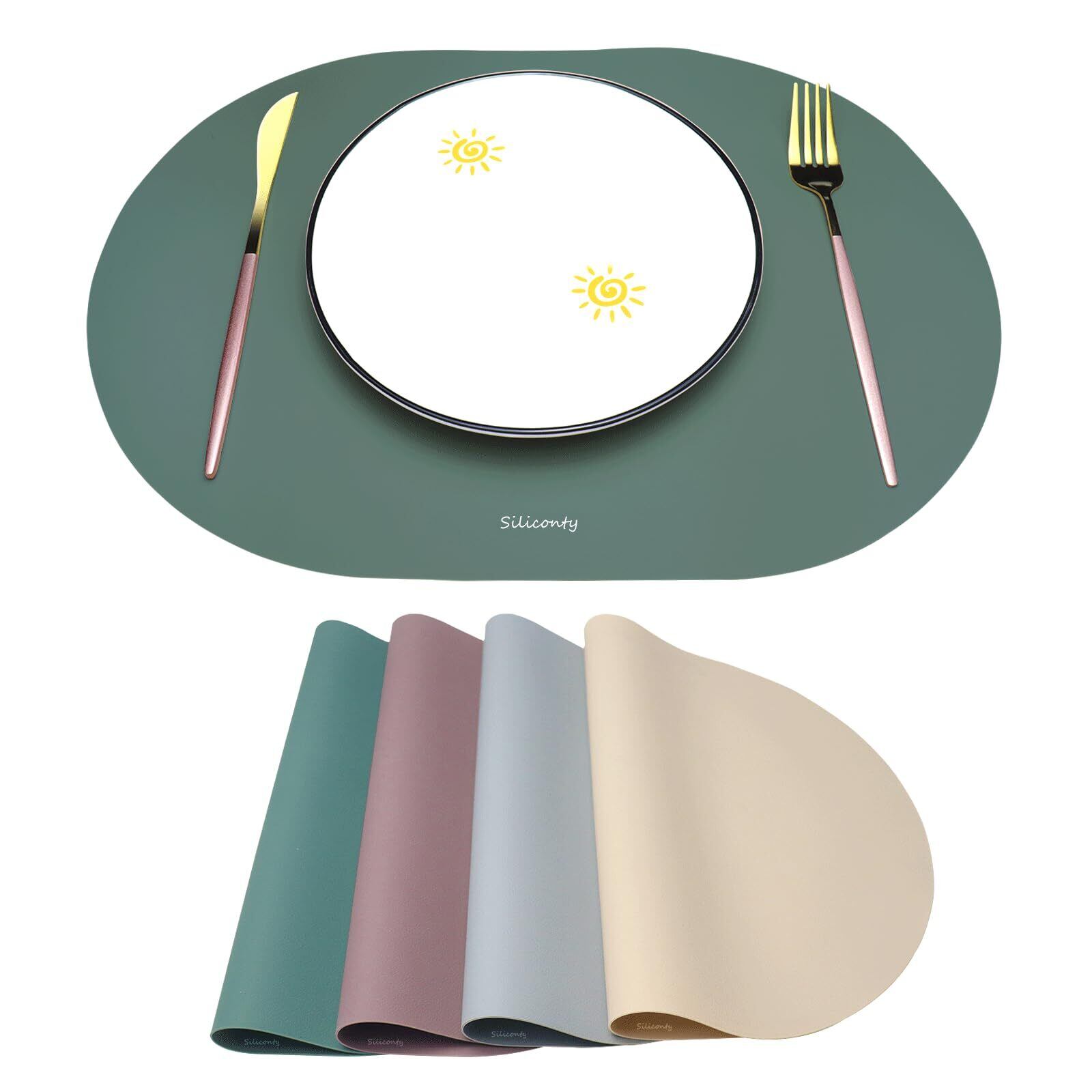 ランチョンマット シリコン シリコンマット Siliconty 食事マット テーブルマット シリコンランチョンマット グリーン 無地 洗える 汚れ防止 耐熱 防水 天然素材 -20℃-220℃ 高温・低温耐性 滑り止め 食洗機対応 介護 製菓 調理台保護 おしゃれ お手入れ簡単 折りたたみ 多機能マット 繰り返し使用可能 大人用・子供用 43*30cm 楕円形 (2, 緑+緑)