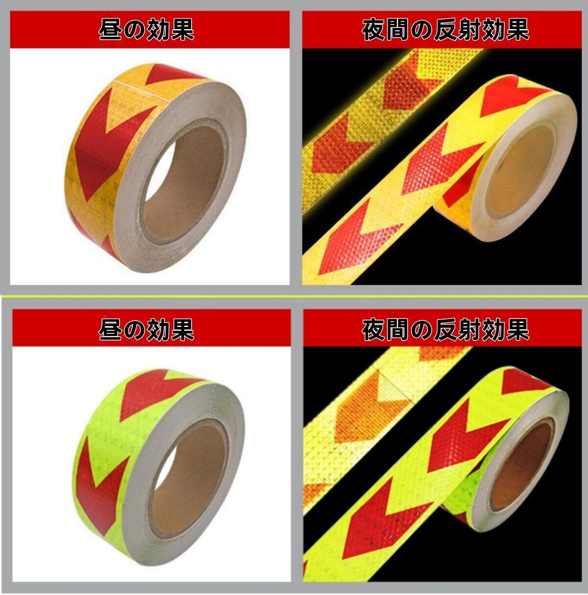 Jiaureshiby 反射テープ 5cm*25m 反射シート 反射材 高輝度 強粘着 安全標識 反射シール 警告テープ 反射ステッカー 反射フィルム 道路標識 高視認性 注意警告 安全表示テープ 事故防止 自転車 安全表示 夜間 道路 耐久性 耐候性 駐車場 屋外 オートバイ トラック 交通標識 消防 安全警告 矢印模様 (オレンジ色とレッド)