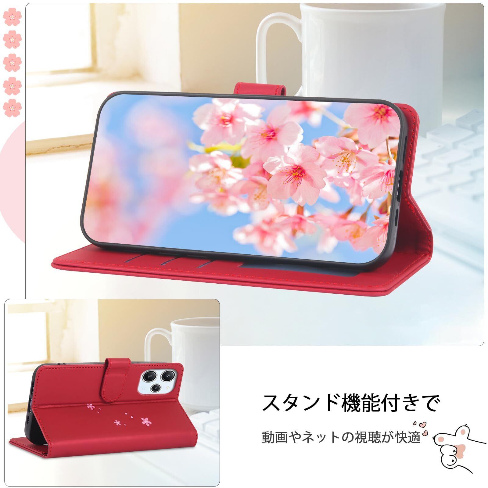 スタンド機能:Redmi 12手帳型ケースは、横置き水平スタンド機能を備えており、好きな角度に合わせて動画を見たり読んだりして、両手が解放さ、長時間での新幹線、飛行機の中での暇つぶしに最適ですよね、キッチンでレシピを読みながら料理を作る、肩こりや姿勢の防止に。