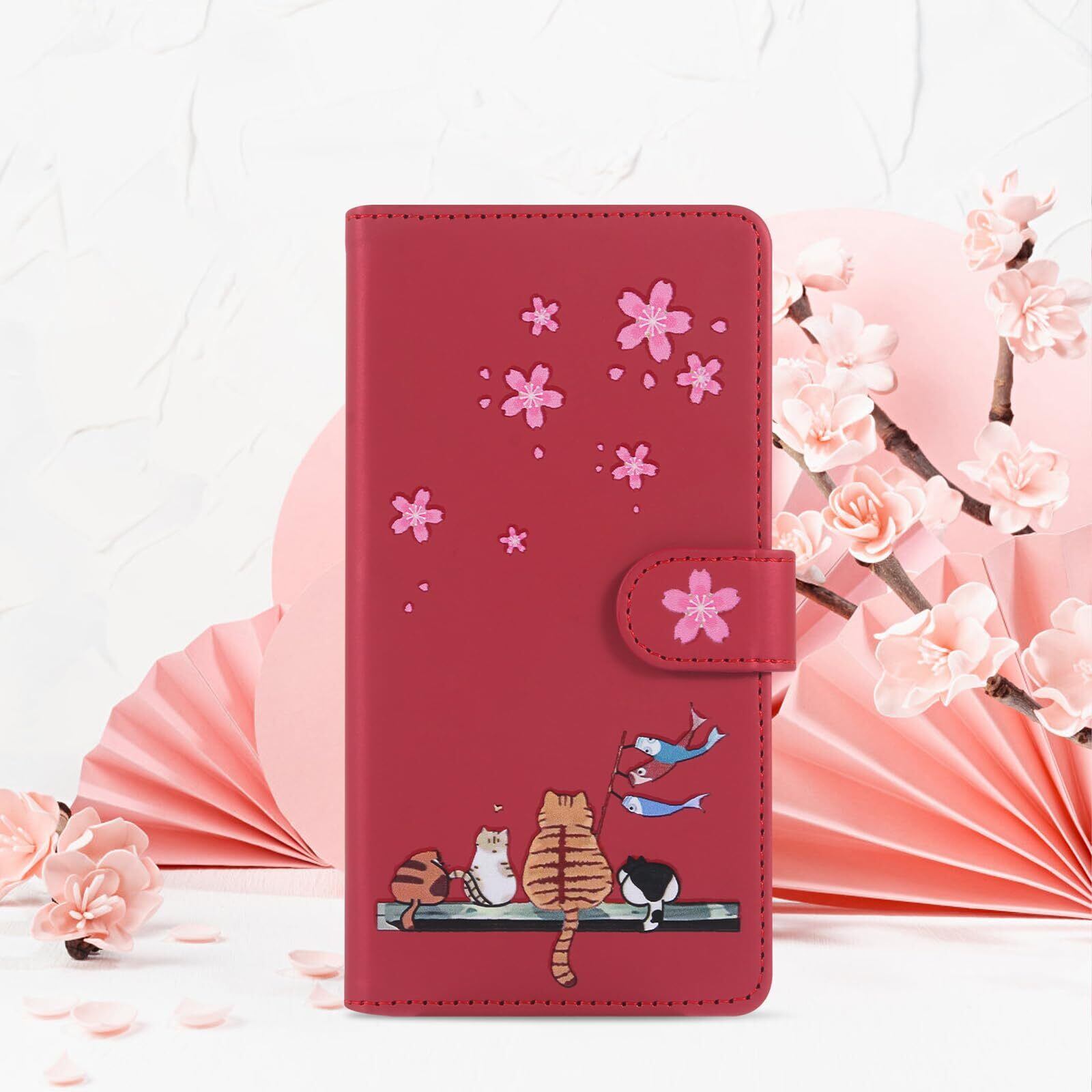 Qribo Xiaomi Redmi 12 5G ケース 手帳型 Redmi 12 XIG03 手帳型 ケース コンパクト 元気 鯉のぼり模様 和風 手触りのいい Xiaomi Poco M6 Pro 5G ケース 手帳型 スマホ スタンド Redmi 12 ケース 色は新鮮でエレガントです Redmi 12 5G カバー レドミ12 5G スマホケース 軽い ソフトケース レッド