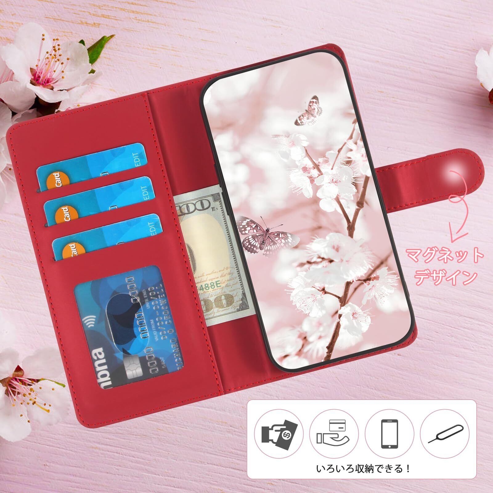 カード収納用途:Qriboの鯉のぼり模様携帯ケースは、携帯ケースには3つのカードスロットと1つの財布があり、少量のクレジットカードと現金の入金が可能。