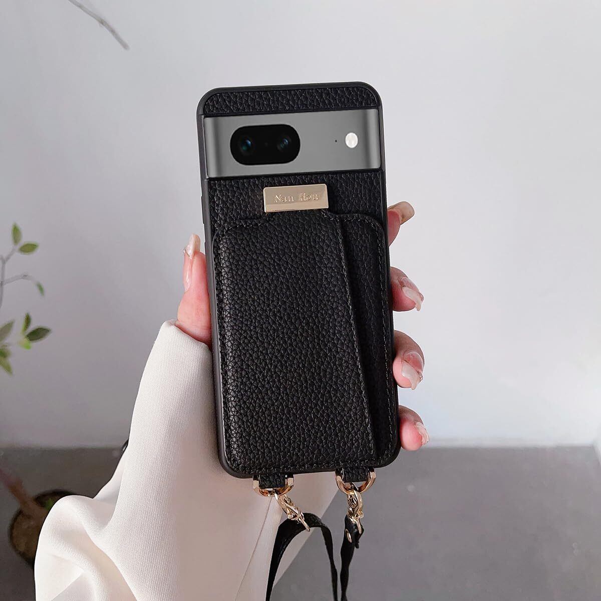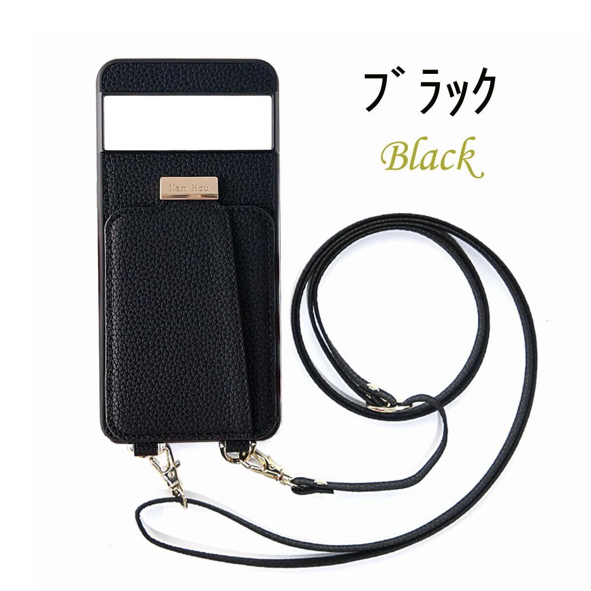 【在庫処分】NanHou Google Pixel 8 A ケース 手帳型 高質PU ファッション手帳型 斜めショルダーストラップ付き(長さ調整可能)耐衝撃 保護 Google 8A カバー 内蔵 自吸式開閉 マグネット 背面鏡付き 人気 携帯カバー 女性 上品 カードポケット スタンド機能 リストバンド グーグルピクセル 8 A ケース - ブラック | gsmshop