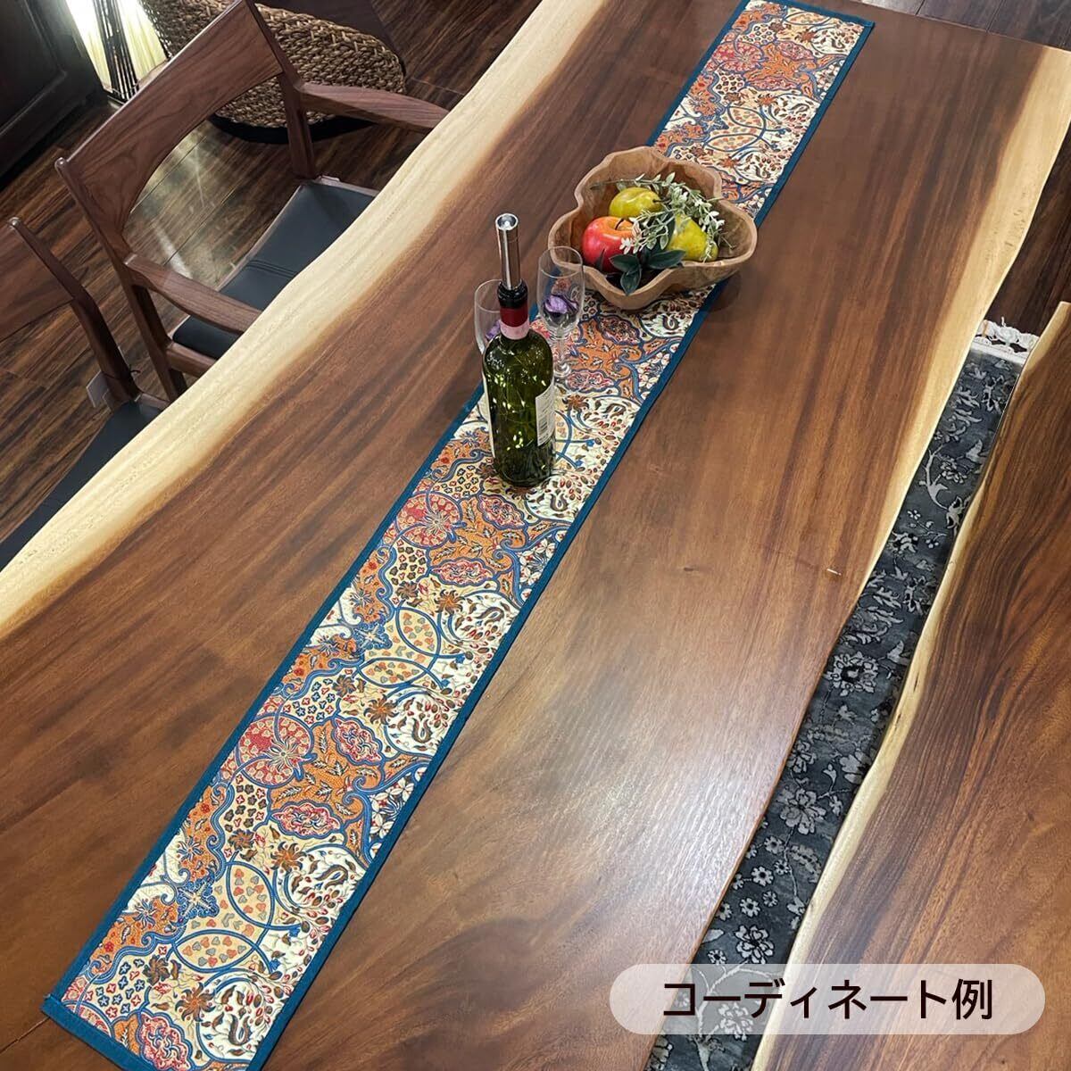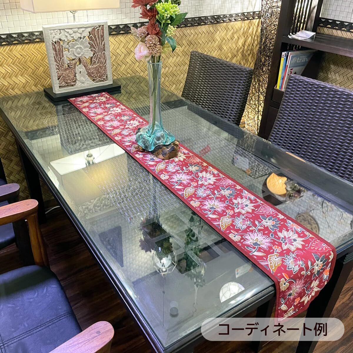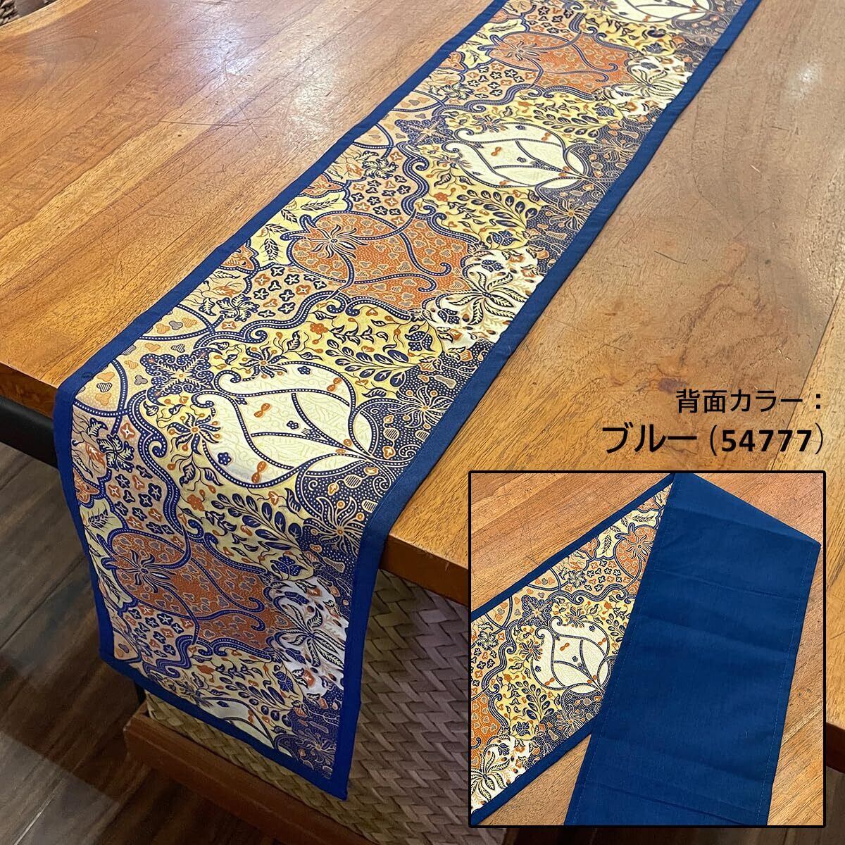 バティックのエキゾチックなモチーフが魅力あふれるテーブルランナー。両面使えるリバーシブル仕様で、1枚で二つの雰囲気をお楽しみいただけます。