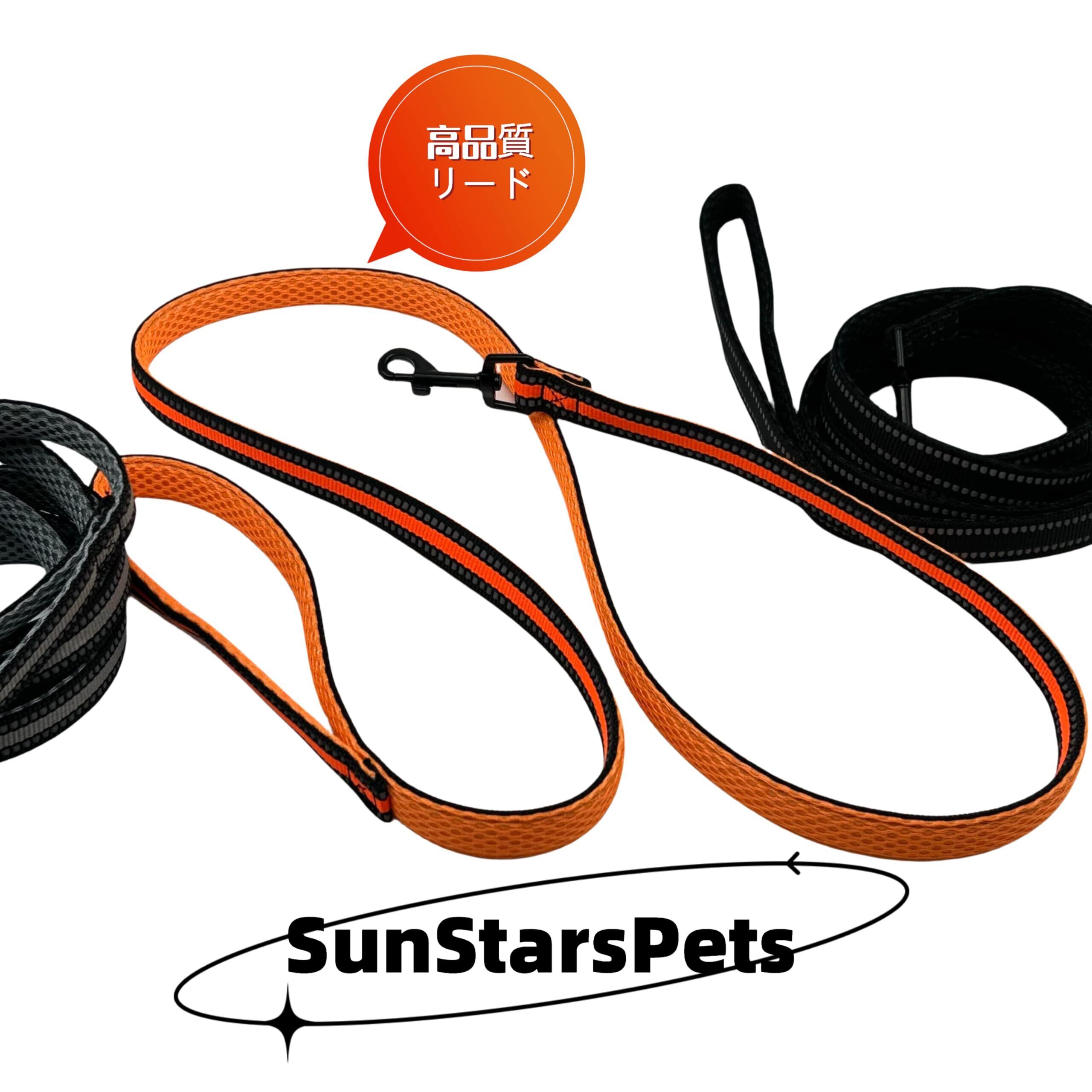 SunStarsPets 犬用散歩用リード 小型犬から大型犬まで対応 トレーニング用長いリード ペットアクセサリー 反射素材 3M採用 ナイロン素材 調整可能 メッシュ製 (黒, 150センチメートル)