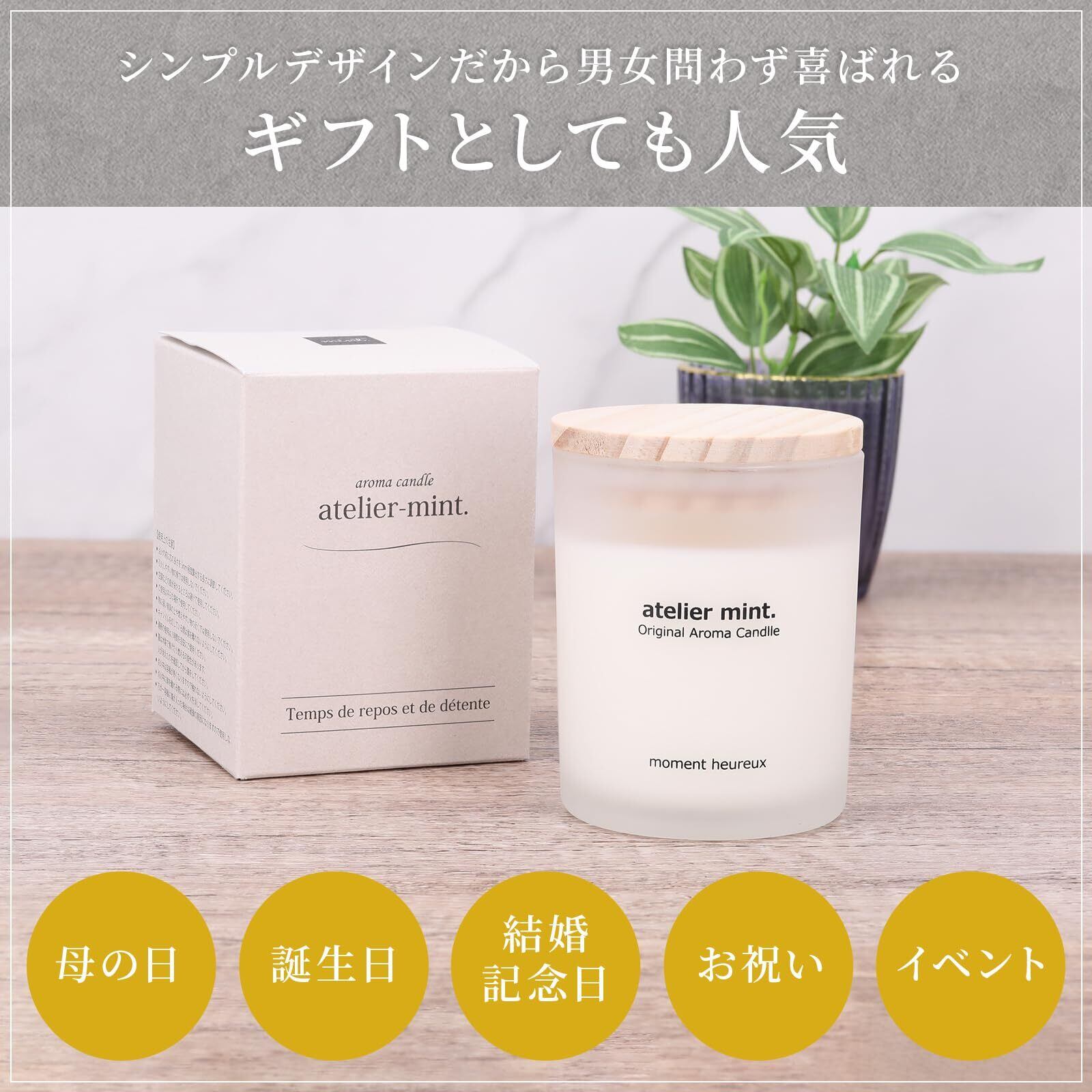 atelier mint. 国産アロマキャンドル《イランイラン 》甘く芳醇な香り 自然由来のソイワックスを使用 30時間以上 長持ち 蓋付き プレゼントにも