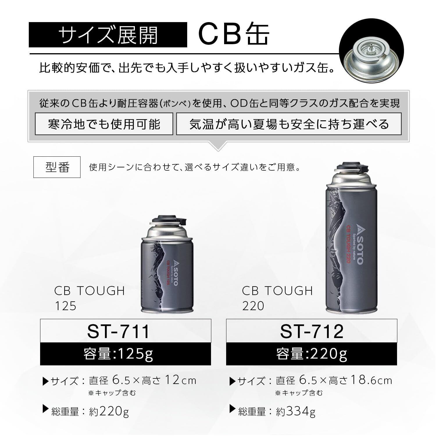 ソト(SOTO) 日本製 CB缶 ハイパワー カセットボンベ アウトドア CB TOUGH 125/220 単品/12本セット