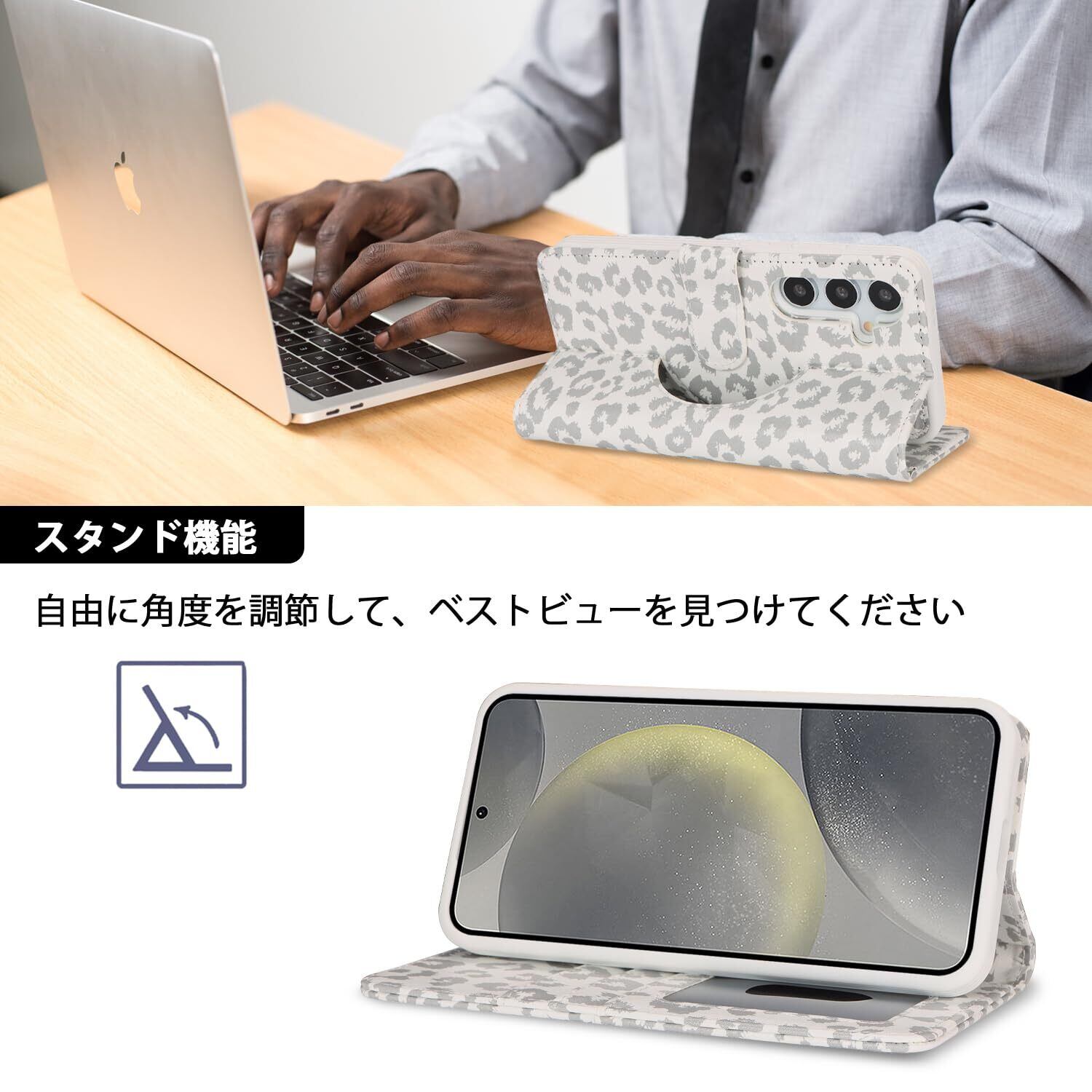 Havaya Galaxy S24 ケース Magsafe 対応 ギャラクシーs24 ケース 手帳型 マグセーフ SC-51E スマホケース SCG25 カード収納 SC51E au S24 レザー 【分離式2in1】 ワイヤレス充電対応-ホワイト (ヒョウ柄)