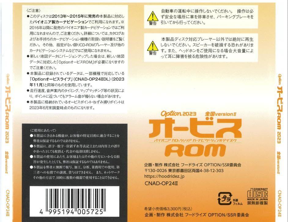 サイバーナビ 楽ナビ Option「オービスROM」2023年 全国Version CNAD-OP24II