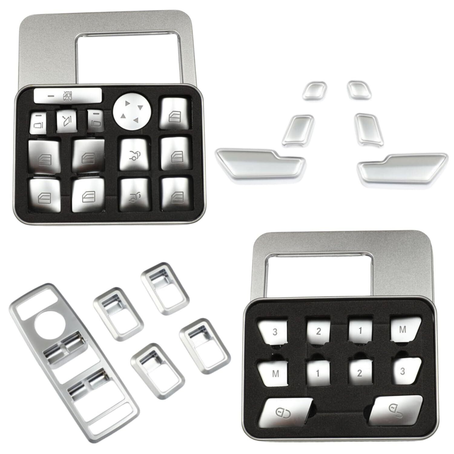 KeiSquare メルセデス ベンツ 用 スイッチ カバー ドレスアップカバー アクセサリー カスタム ドアロック ABSクロームメッキ サテンシルバー (37)