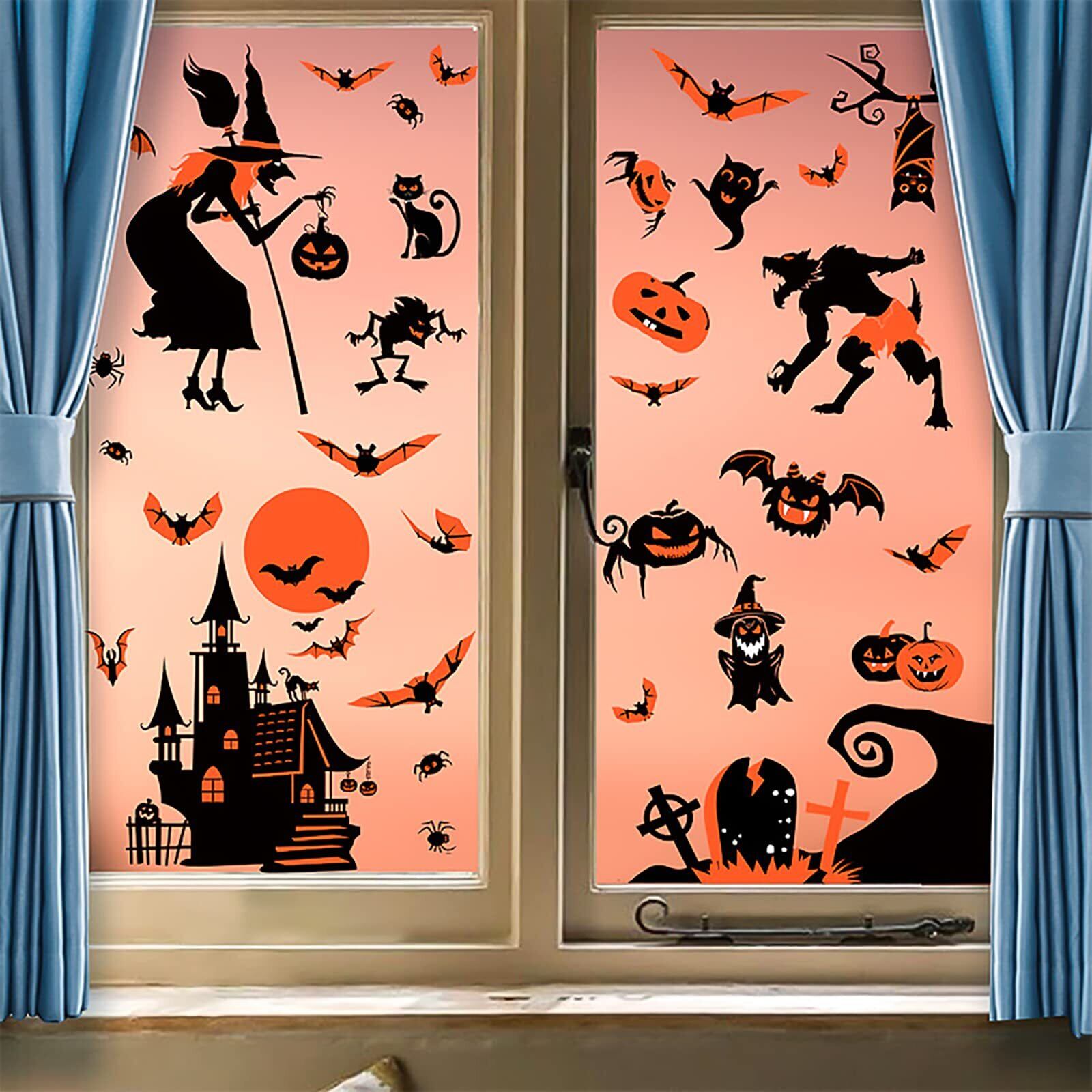 【2022最新】【LEISURE CLUB】ハロウィン 飾り ウォールステッカー 静電ステッカー 静電 ガラス ステッカー 飾り付け 静電気シール 窓ステッカー 壁飾り 剥がせる壁紙 クモ コウモリ diy 部屋 デコレーション インテリア | gsmshop