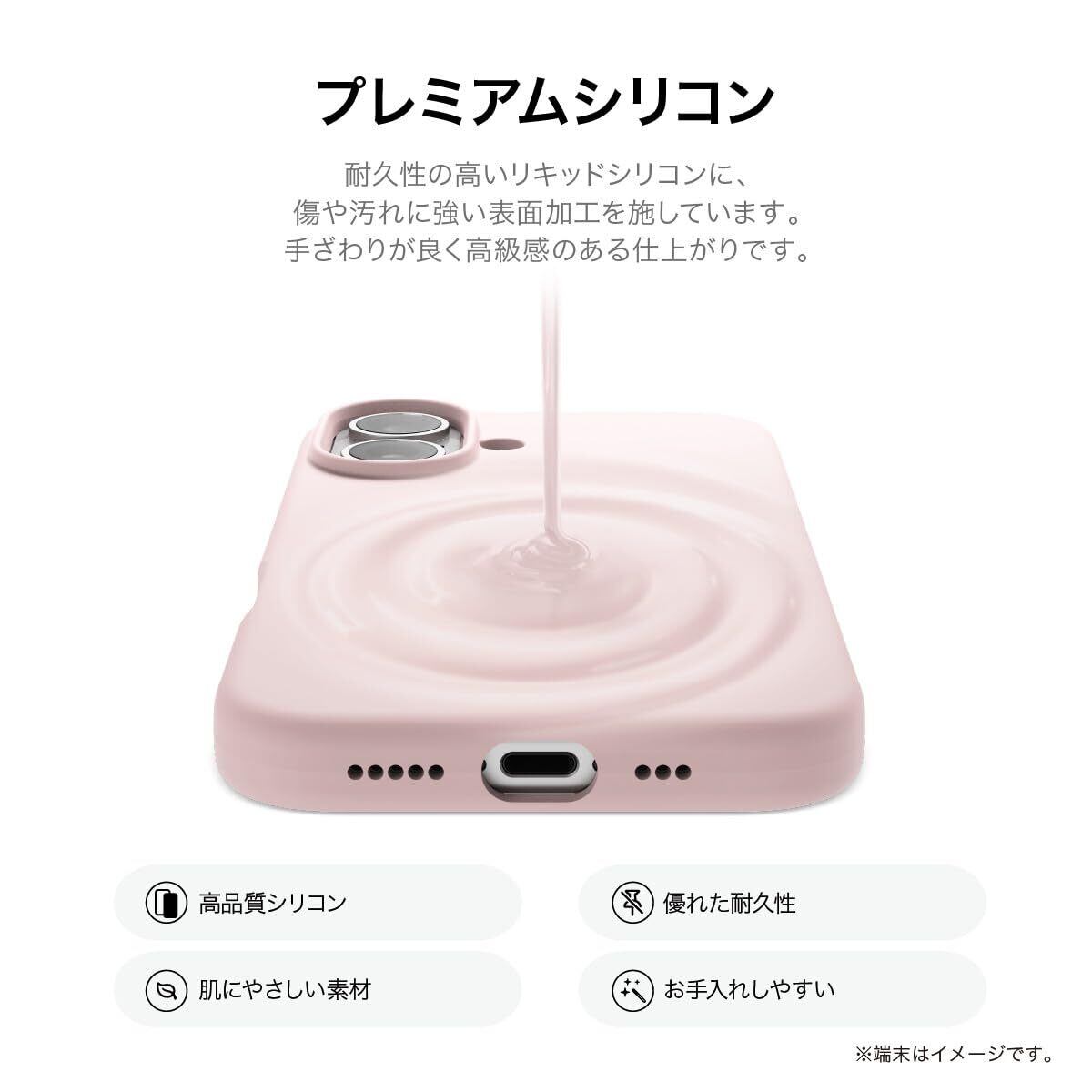 【液体シリコン】… 液状のまま色素を混ぜることで、ムラのない綺麗な仕上がりになります。素材の細部にまで拘ったケースです。