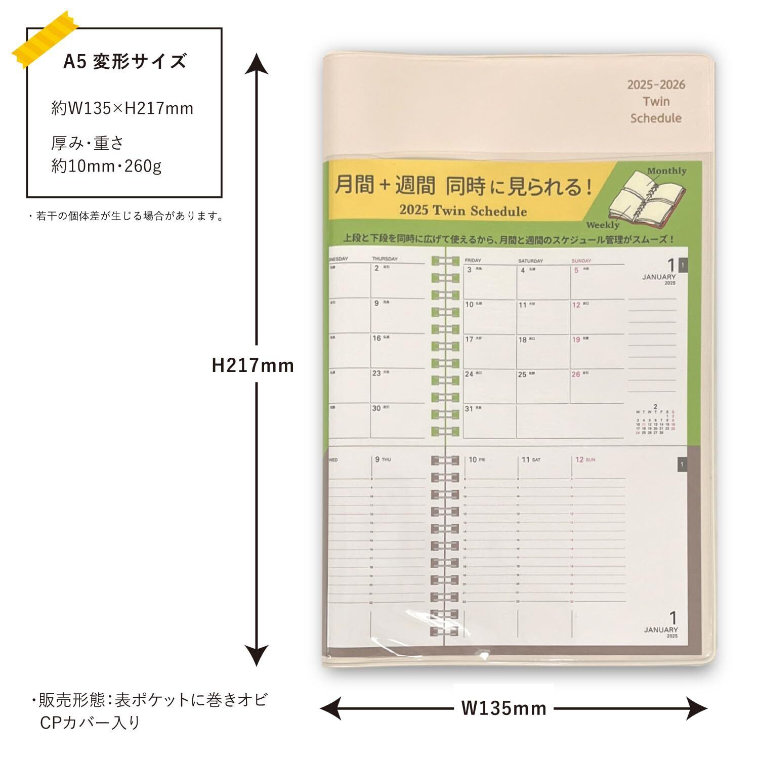 商品名:学研ステイフル 手帳 2025年 スケジュール帳 ツイン手帳 A5 アイボリー A11074 2025年 1月始まり