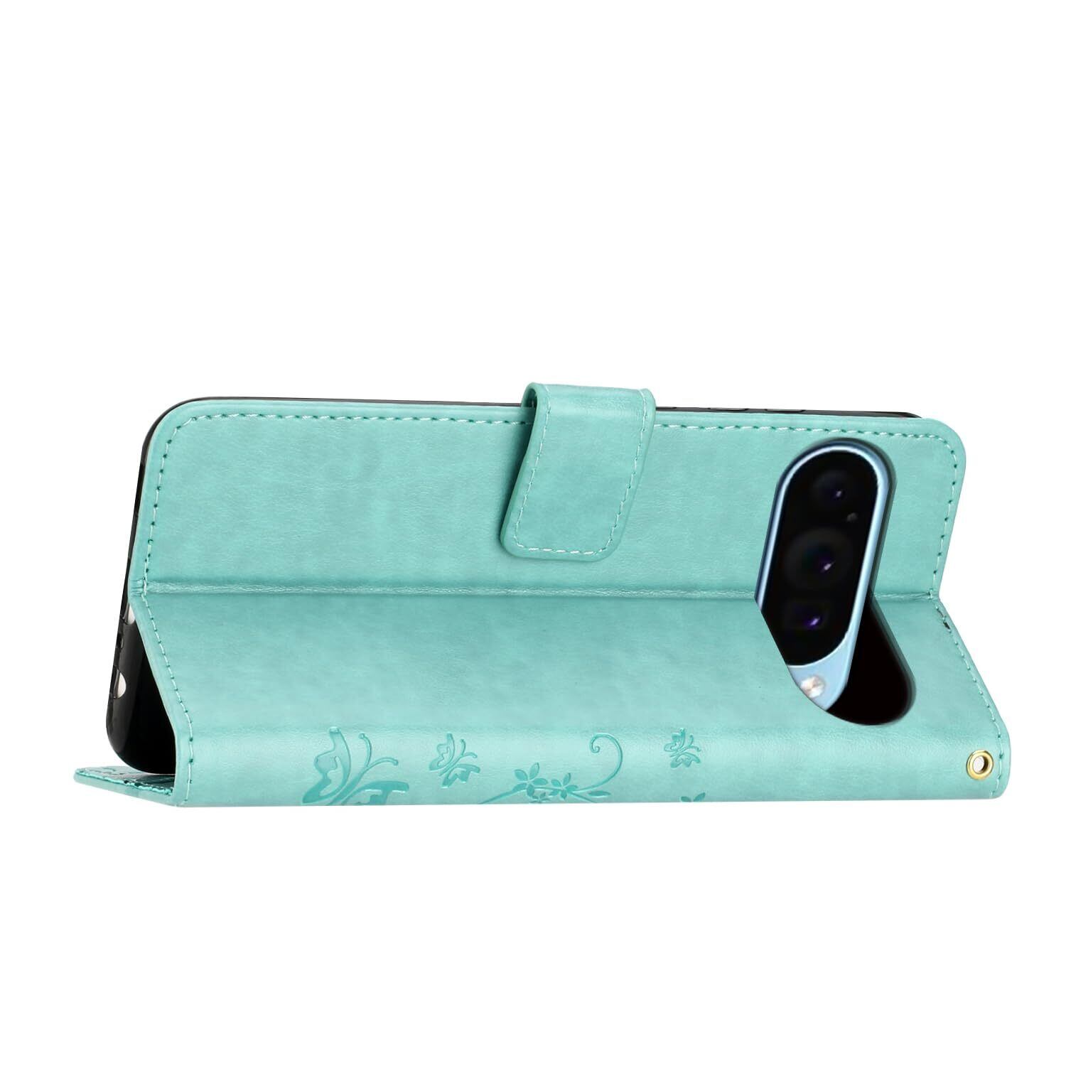 Google Pixel 9 ケース 6.1 インチ専用 9 Pro 手帳型 カバー おしゃれ 純色 バタフライの印 PUレザー 上絵 手帳型 カード入れ グーグル ピクセル9プロ 財布カバー スタンド機能 耐衝撃 防塵 吸着の機能 キラキラ 胡蝶 ラインストーン デコ メチャ可愛い ピクセル 9 スマホカバー (グリーン, Google Pixel 9/9 Pro)