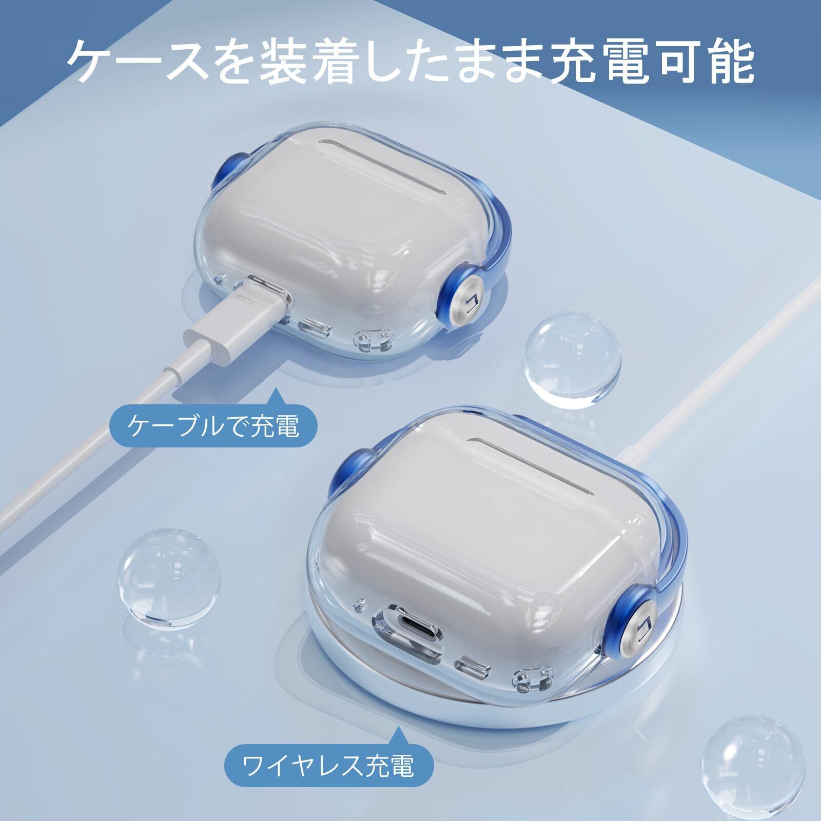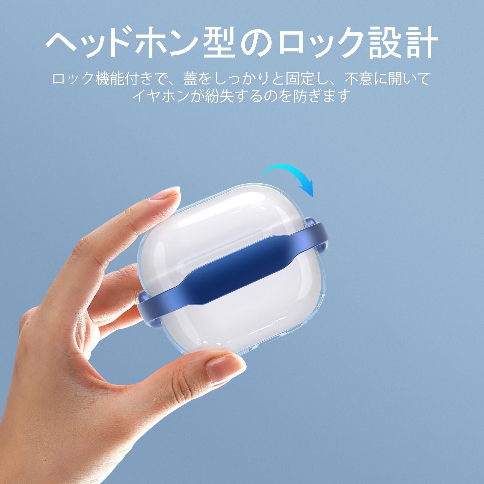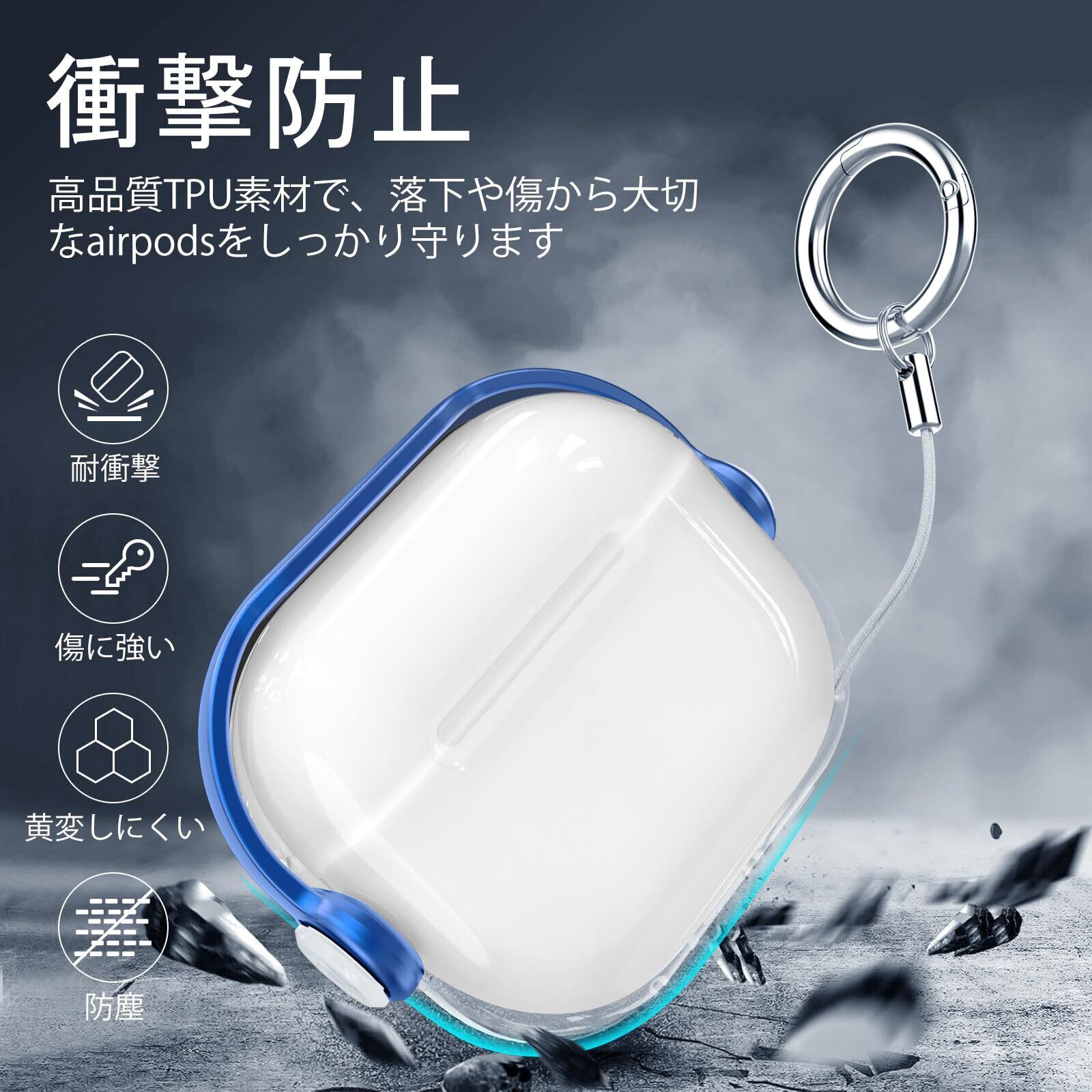 【新着商品】HEIGKOIK 【2024年発売】Airpods 4 ケース AirPods 第4世代 ケース TPU 透明 ロック付き 装着充電可能 耐衝撃 軽量 キズ防止 おしゃれ ワイヤレス充電対応 カラビナ付き Airpods 4 対応 保護カバー スタンド機能付き(透明+ブルー) | gsmshop