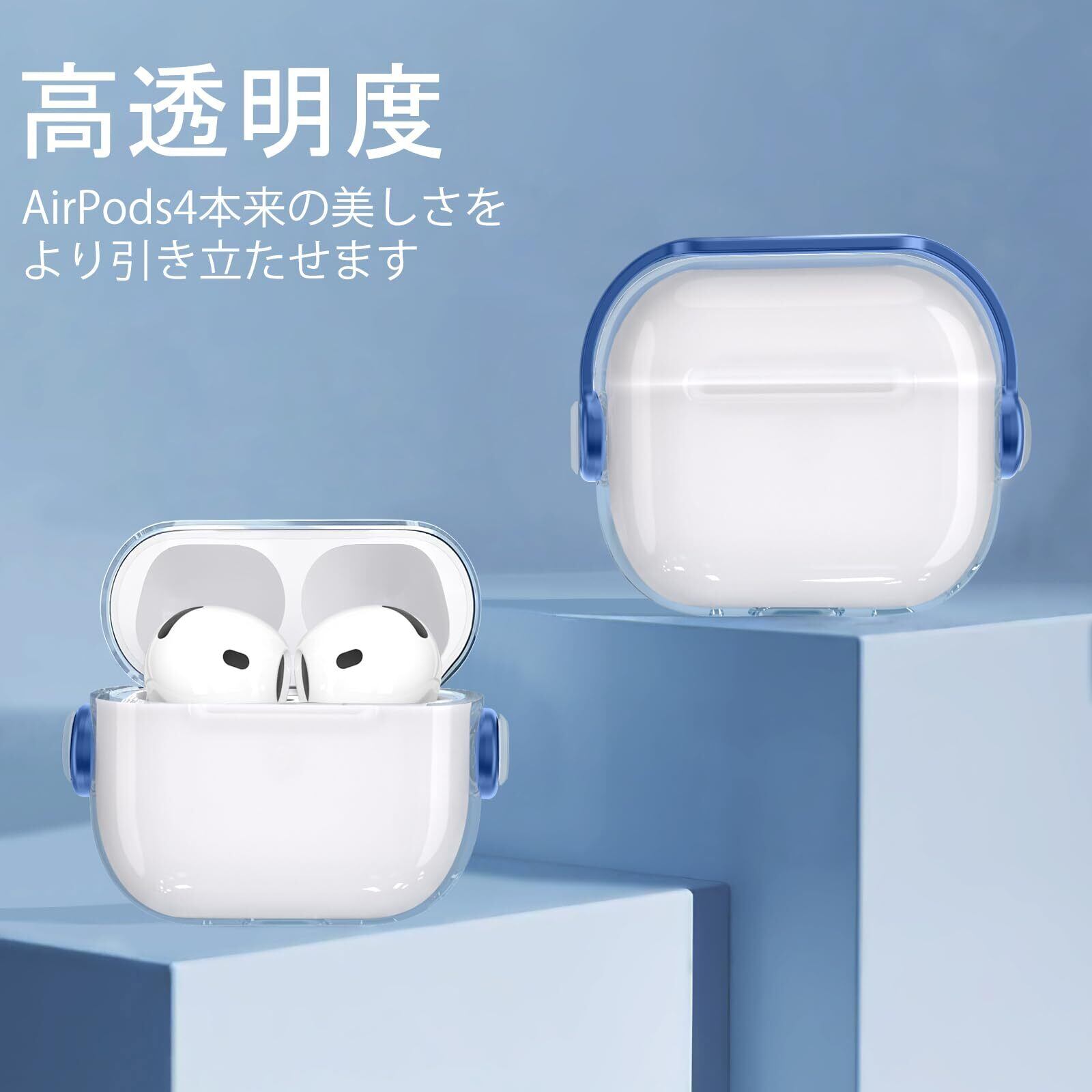 HEIGKOIK 【2024年発売】Airpods 4 ケース AirPods 第4世代 ケース TPU 透明 ロック付き 装着充電可能 耐衝撃 軽量 キズ防止 おしゃれ ワイヤレス充電対応 カラビナ付き Airpods 4 対応 保護カバー スタンド機能付き(透明+ブルー)