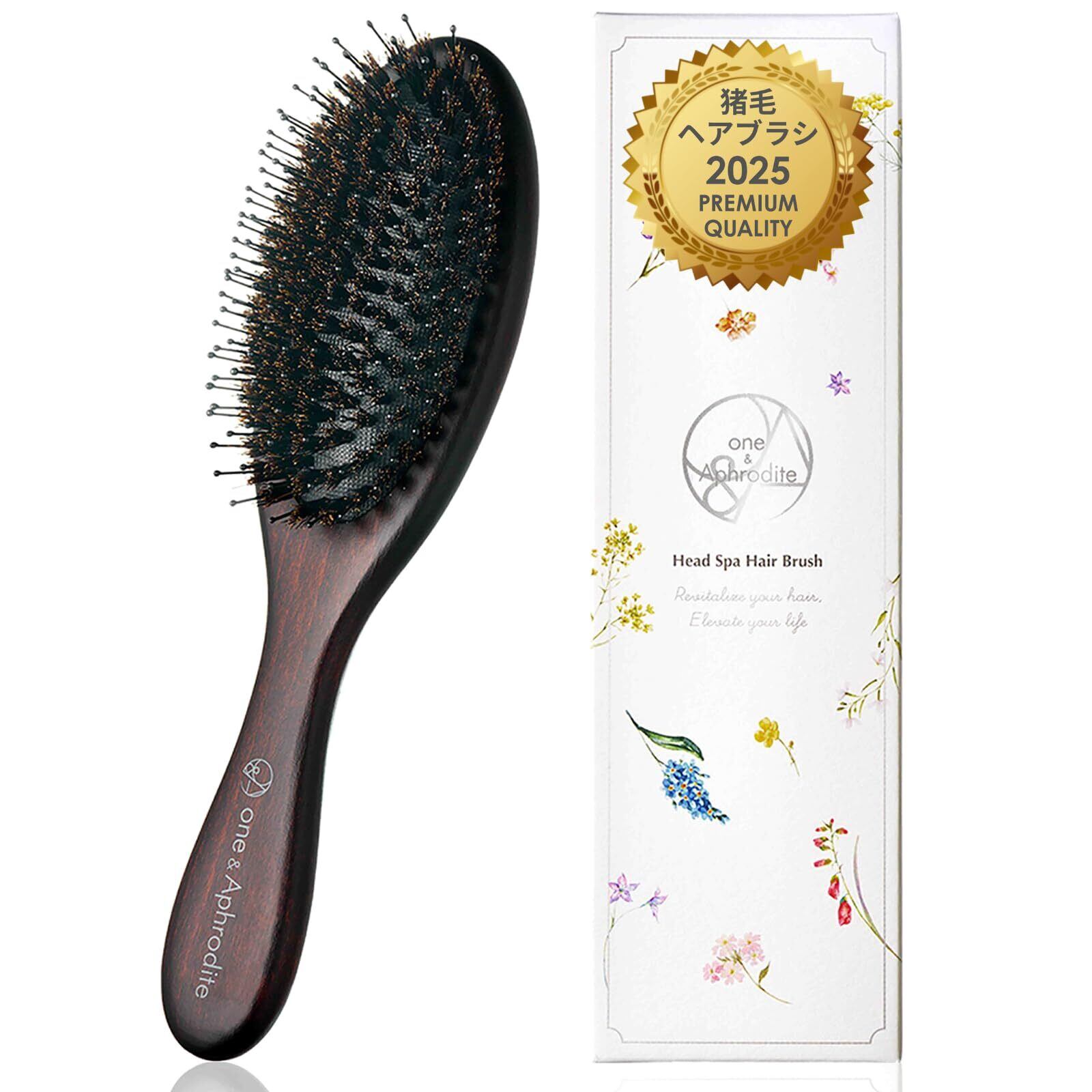 one&Aphrodite ヘッドスパ ヘアブラシ 高密度 猪毛ブラシ 豚毛ブラシ うねり くせ毛 静電気 頭皮マッサージ 抜け毛対策 うるサラ艶髪
