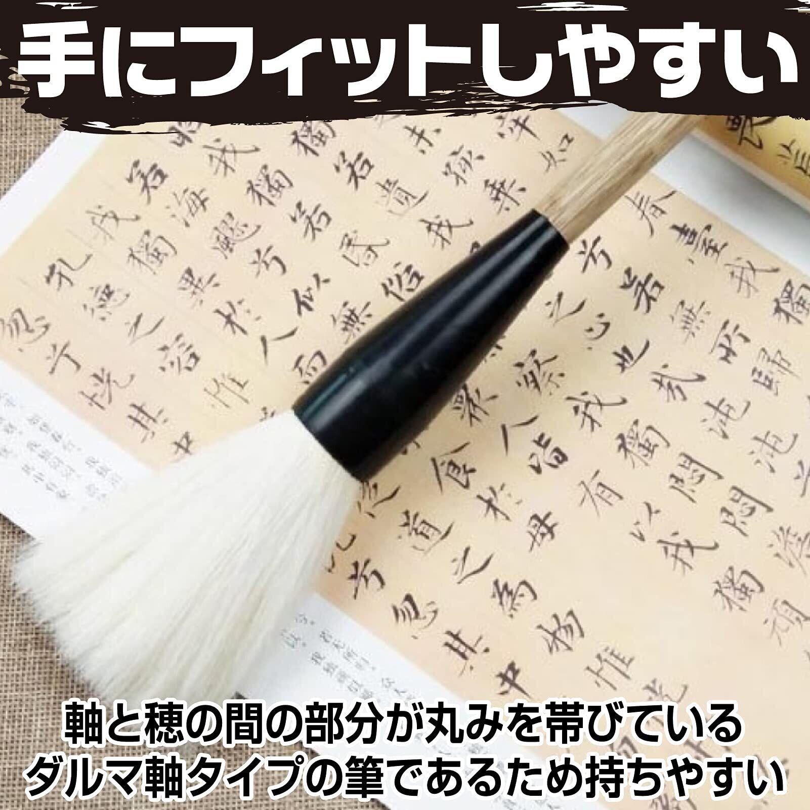【特徴】軸と穂の間の部分が丸みを帯びているダルマ軸タイプの筆であるため、持ち手にフィットしやすいといえます。軸が直線で少し違和感があるという場合は、ダルマ軸タイプの筆を試してみるのも一つの手です。