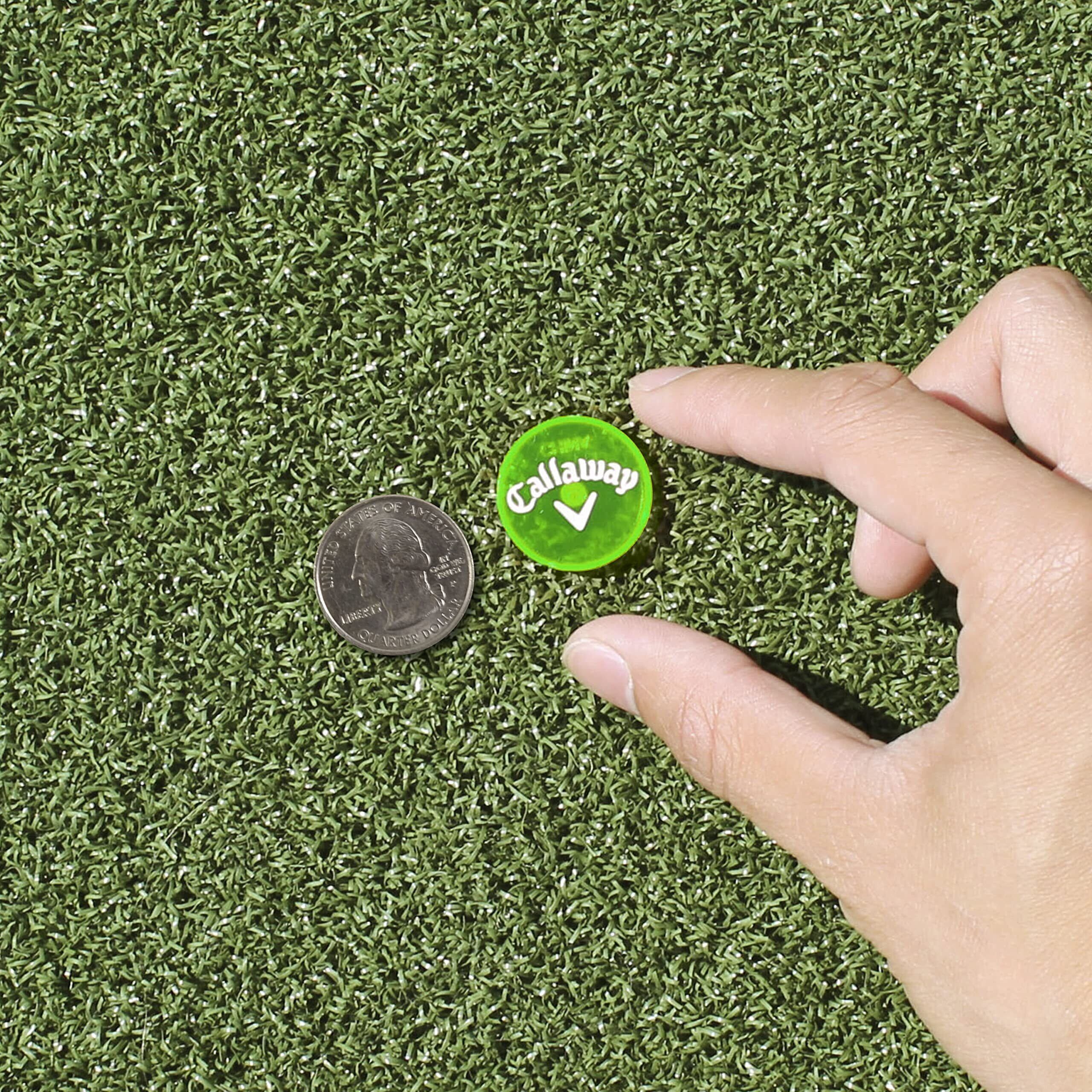 キャロウェイのロゴが入った、目立ちやすいネオンカラーのボールマーカー