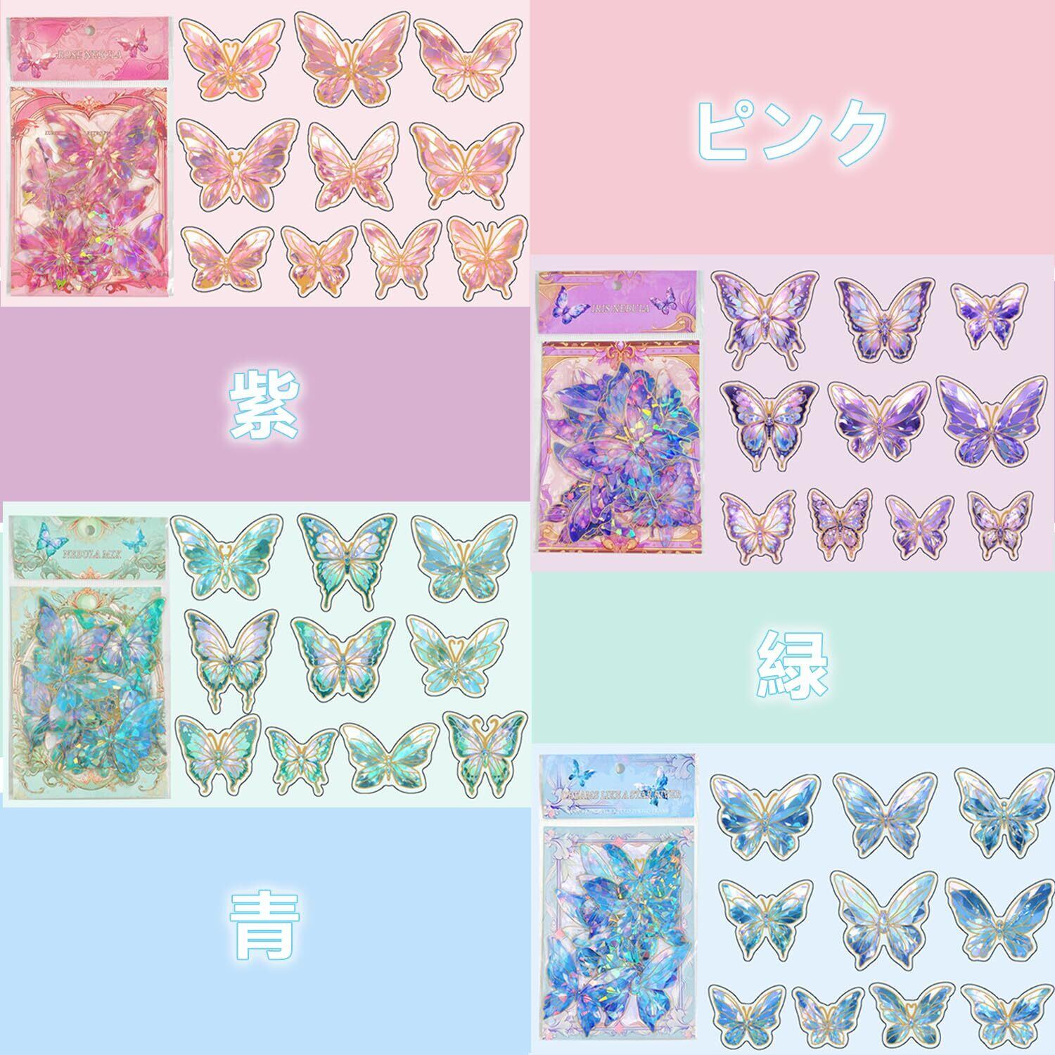 おしゃれ コラージュ素材 レトロ バタフライ コラージュ シール かわいい きらきら 蝶々フレークシール フィルムシール 箔押しレーザ 蝶ステッカー 素材紙 メモ用紙ノート 日記装飾用品 和紙 手帳 デコ DIYの飾りシール
