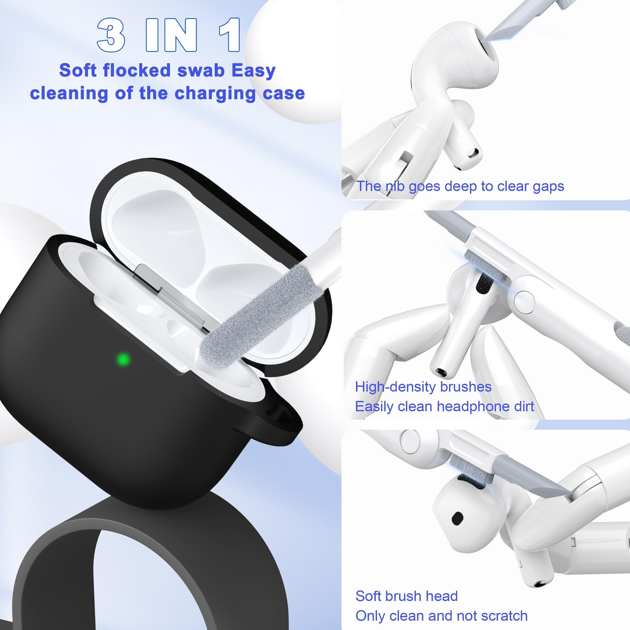 【特価商品】MHYALUDO AirPods 第 4 世代用ケースカバー、ミリタリーグレードのソフトシリコン製衝撃吸収 AirPods 用ケース、キーチェーンとクリーニングキット付き、ブラック | gsmshop
