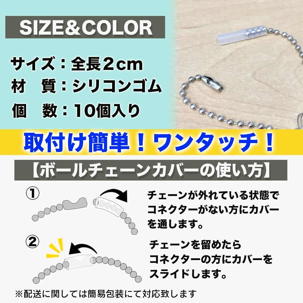 このボールチェーンカバーは、お気に入りのキーホルダー・ペアで買った思い出のぬいぐるみ・高価なブランドチャームなどの思いがけない落下、紛失防止に必須の商品です。透明シリコン製の保護チューブのため取り付けも簡単で目立ちません。