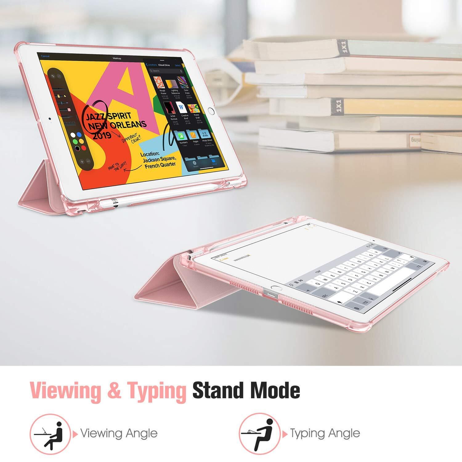 Fintie iPad 10.2 ケース 第9 / 8 / 7世代 2021/2020/2019 半透明バックカバー Apple Pencil 収納可能 三つ折スタンド スリープ機能 軽量 薄型 傷つけ防止 PU 10.2インチ(モデル番号A2197、A2198、 A2200)(ローズゴールド)
