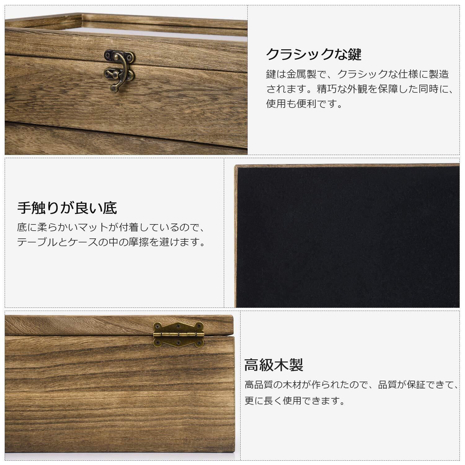 【レトロなデザイン】ボックスは高品質な木材で作られて、表面に明らかな木目が見えます。内側を覆う素朴なリネンは、メガネを傷から保護しながら、独特の美しさを表します。(ご注意:亜麻布は普通のクロースと異なって、一目で粗っぽい感じですが、実が一番天然の布の状態です。もしこのような質感を気にすると、ご検討のほどよろしくお願いいたします)