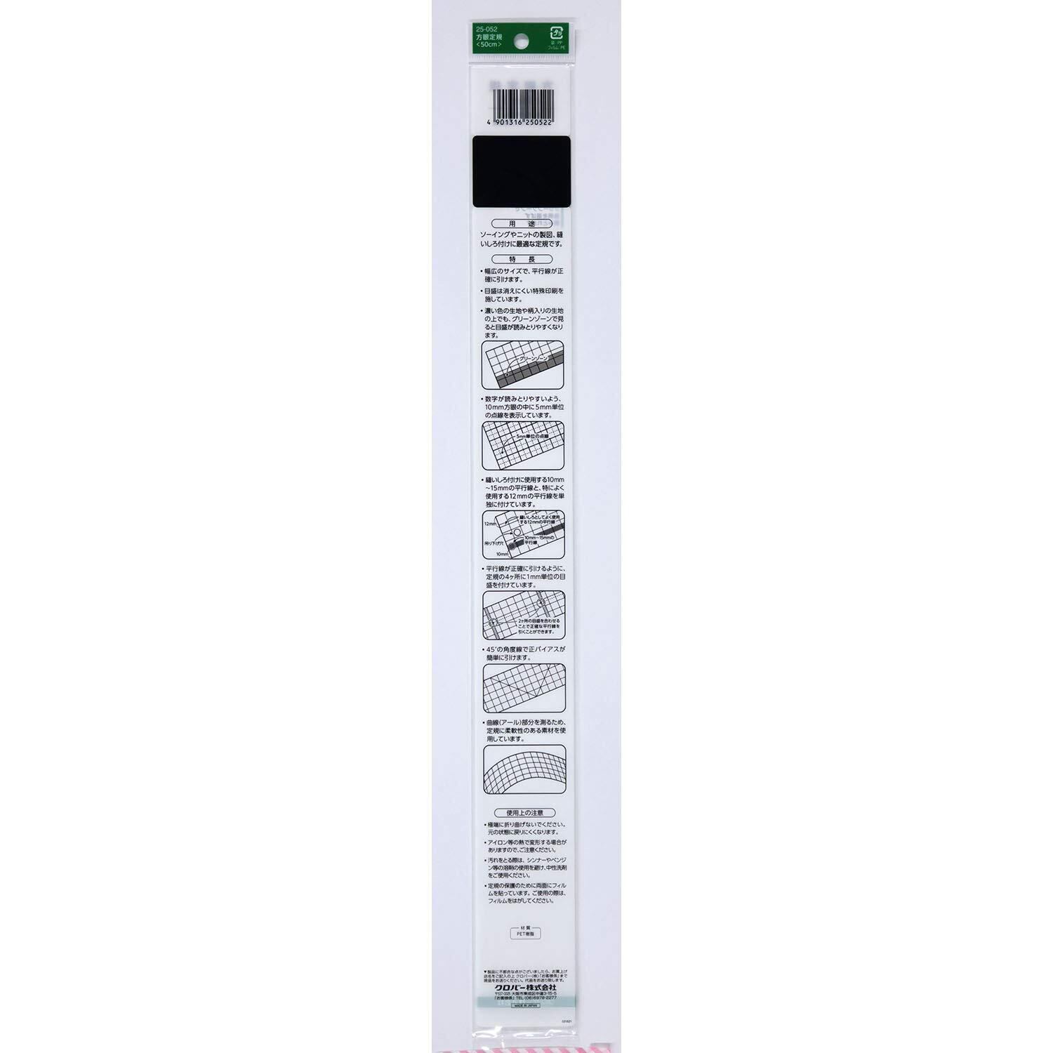 ●グリーンゾーンで濃い布の上でも、目盛りが読み取れます。●適度な柔軟性を持つソーイング定規。●濃い色の布の上でも目盛りが見やすく、45度の角度線で正バイアスを簡単に引くことができます。