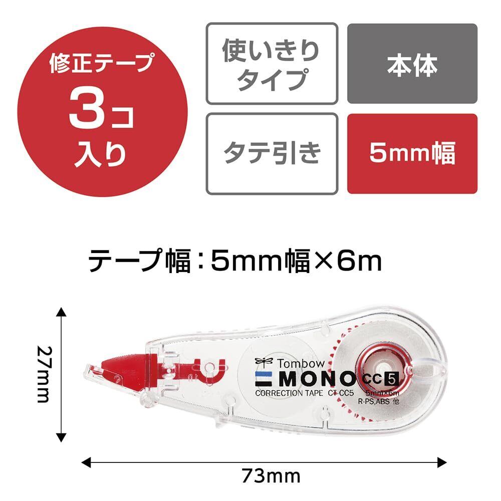 トンボ鉛筆 修正テープ 5mm MONO モノCC (ミニサイズ・高密着テープ) 使い切りタイプ 6m 3個 KCB-326 (CTCC5×3)