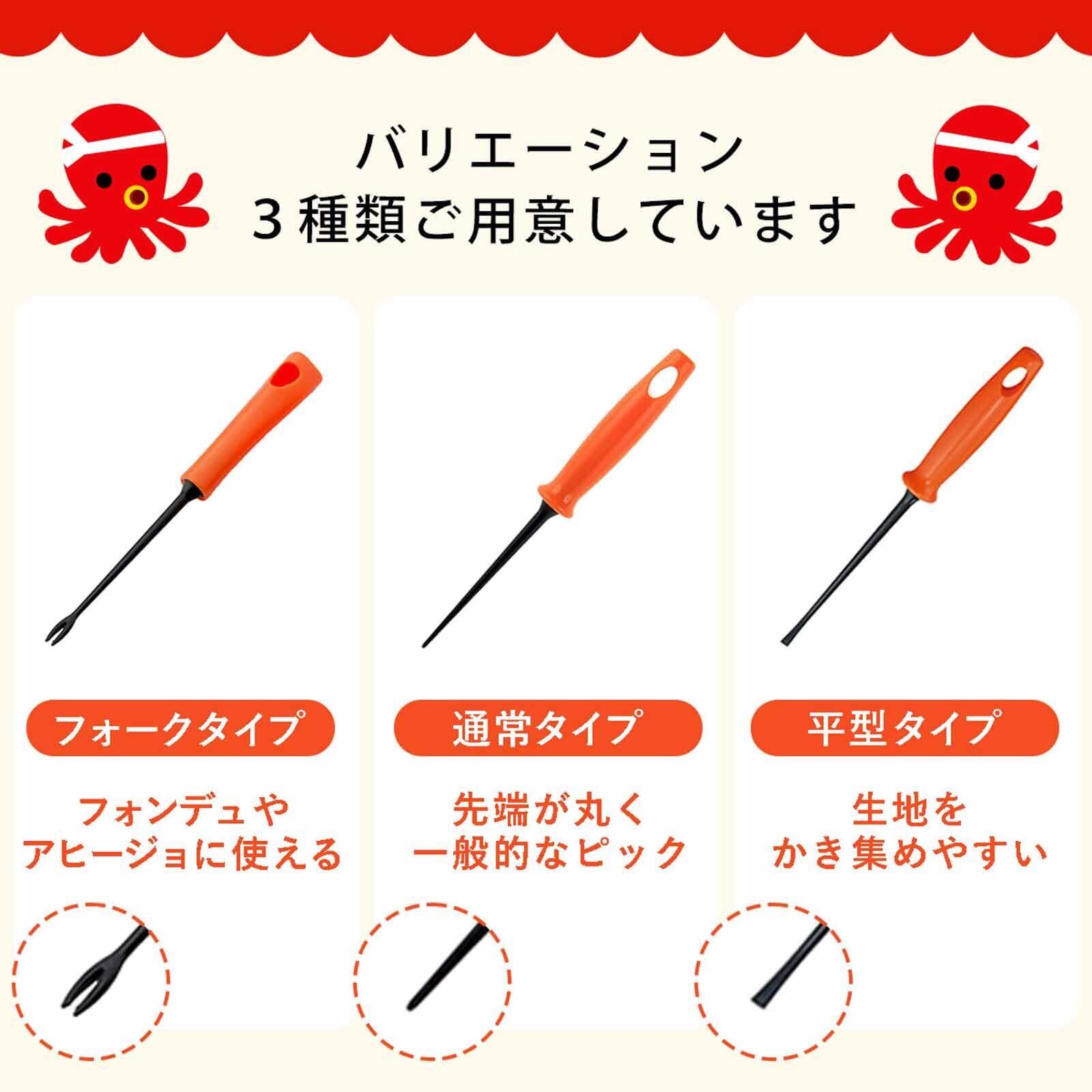 下村企販 ホットプレートをキズつけにくい たこピック 平型 2本組 【日本製】 食洗機対応 耐熱 たこ焼き 生地を集めやすい 平型の先端 樹脂製 オレンジ 燕三条 37275