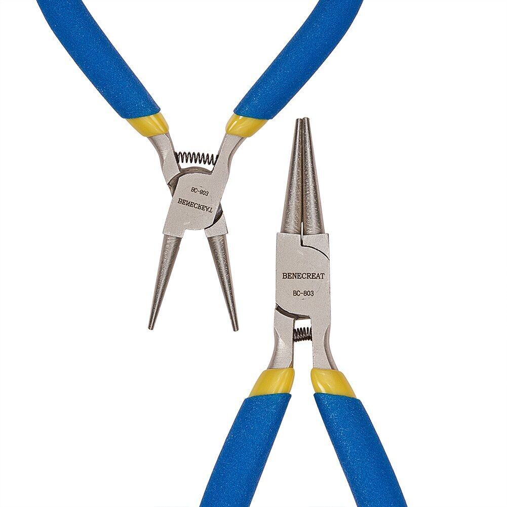 BENECREAT 手芸丸ペンチ 丸ヤットコ ステンレス製 ニッパー アクセサリー ペンチ アクセサリー製作 手芸用 精密作業 ビーズ工具 DIY手作り ブルー