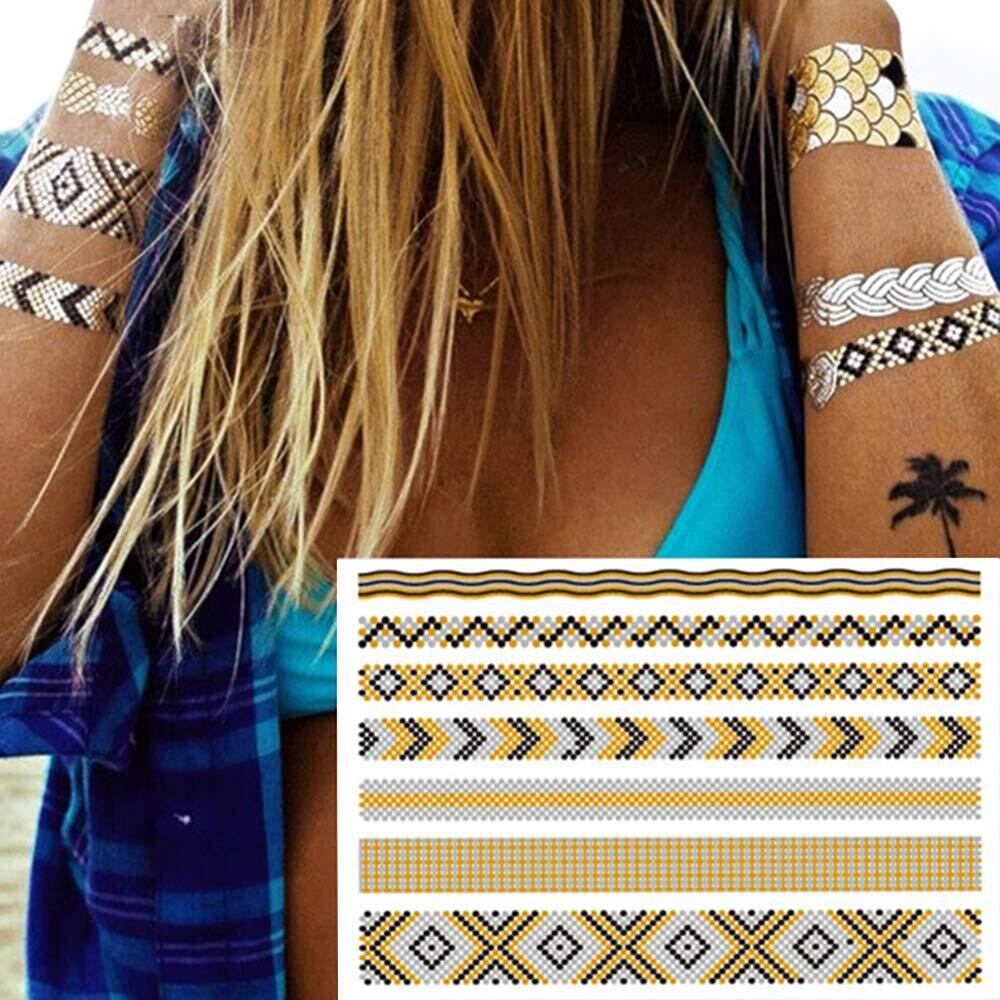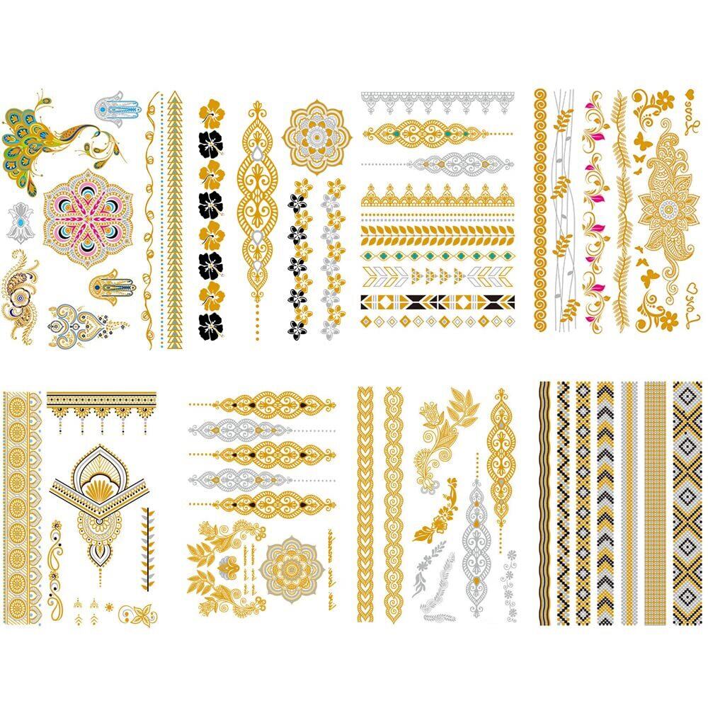 【セット内容】タトゥーシール ゴールド 8枚セット、8種類、各1枚。