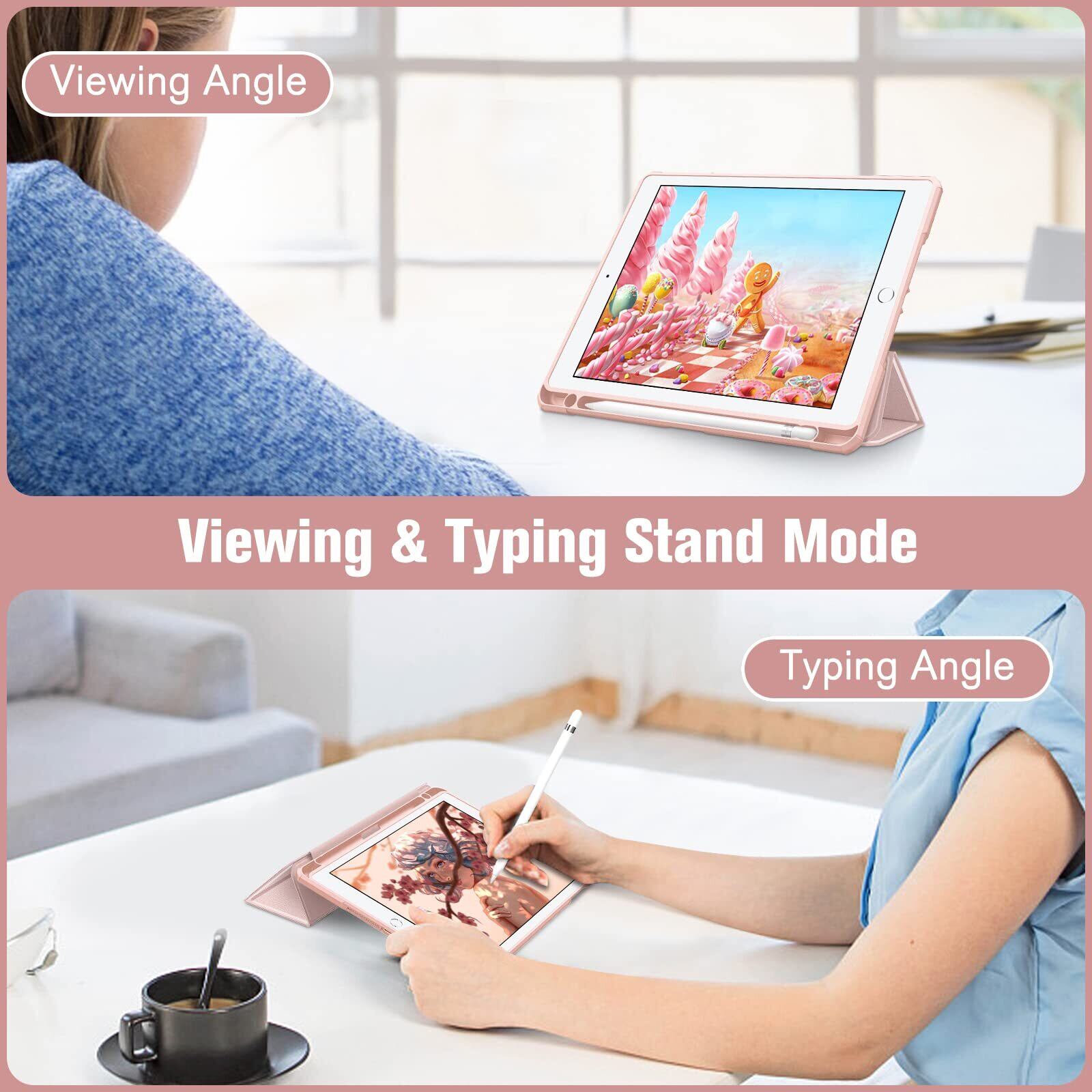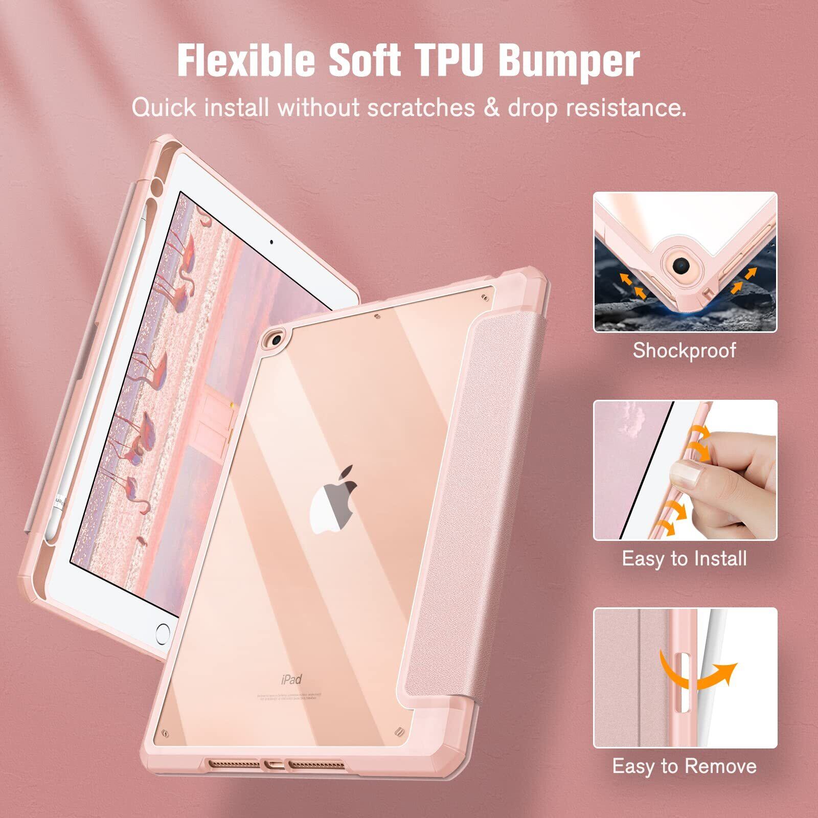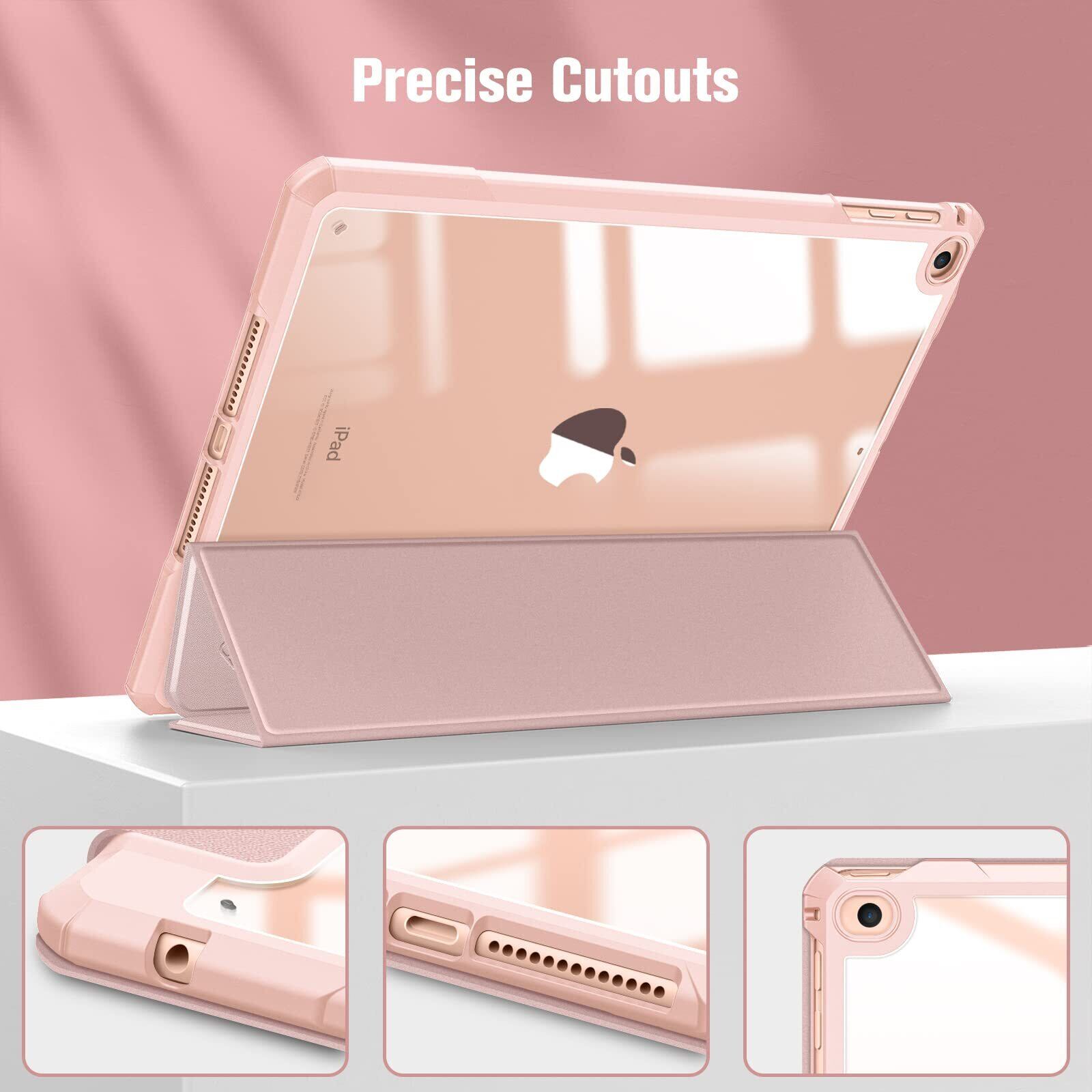 Fintie iPad 9.7 2018 2017 / Air 2 / 1 ケース 透明バックカバー Apple Pencil 収納可能 三つ折スタンド スリープ機能 軽量 薄型 傷つけ防止 PU合成レザー TPU 第6 / 5世代対応 (ローズゴールド)