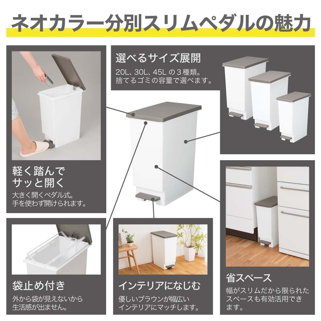 新輝合成 トンボ ネオカラー ゴミ箱 スリム 軽いペダルでサッと開く 20リットル ブラウン 3個セット 幅20×奥行35.5×高さ45cm 蓋付き 分別 日本製