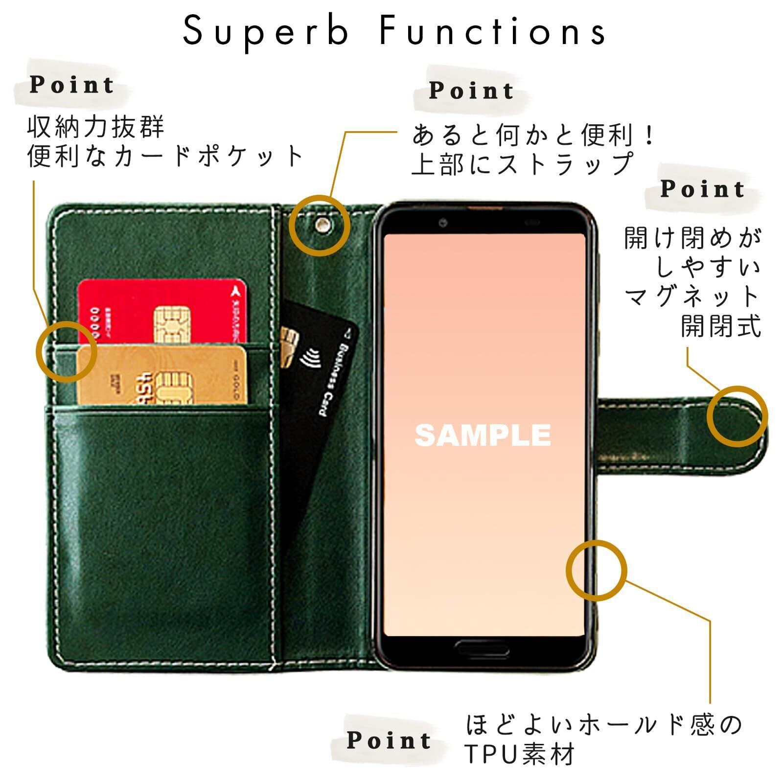 手帳部分と内側ケース部分は接着しておりますが、強くめくったりひっぱると剥がれる場合がございます。内側のケースは黒TPUを使用し、本体をしっかりカバーします。電源ボタンや音量ボタンなどは、黒TPUケースの上から押す仕様となっております。カメラ部分などは機種に合わせた開口部が開いております。