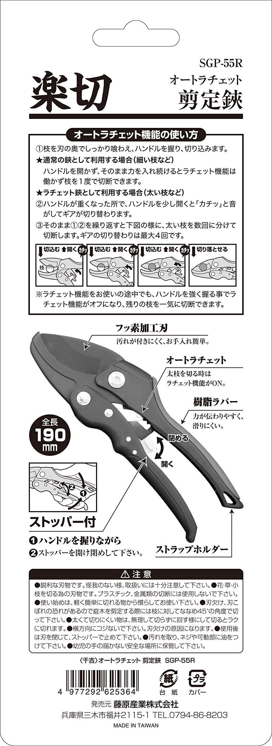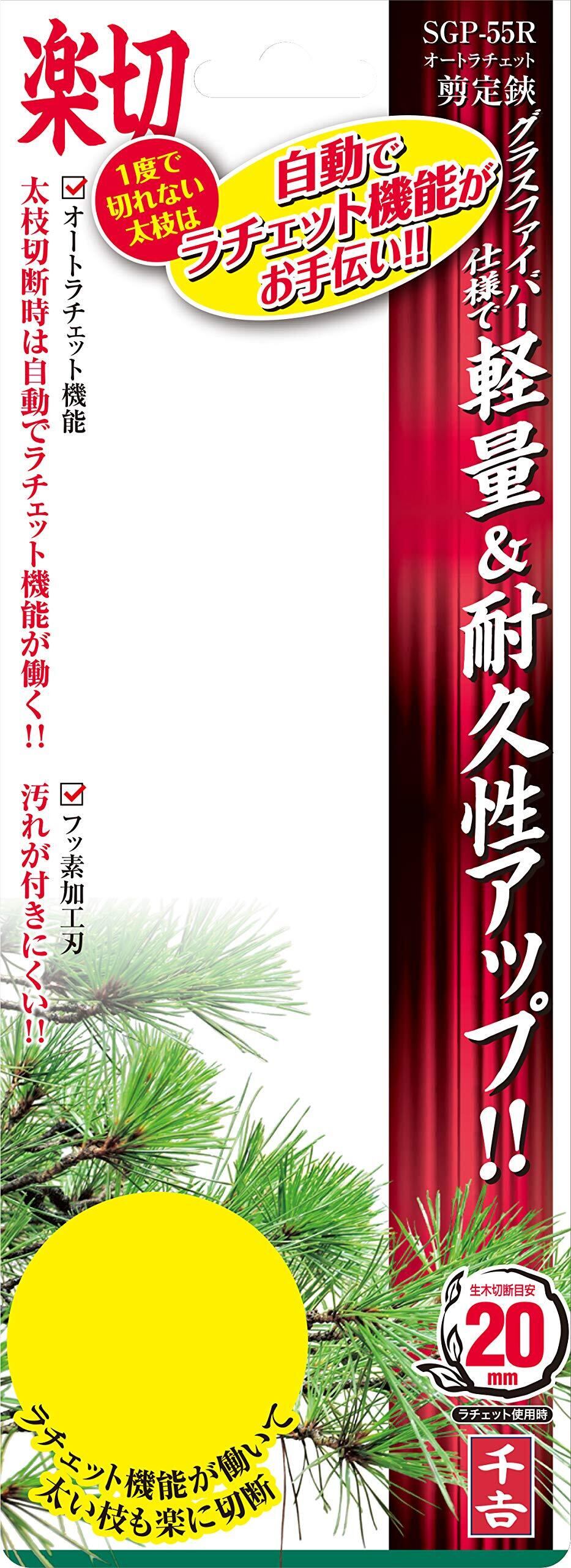 千吉 オートラチェット剪定鋏 生木切断20mmまで(ラチェット使用時) SGP-55R