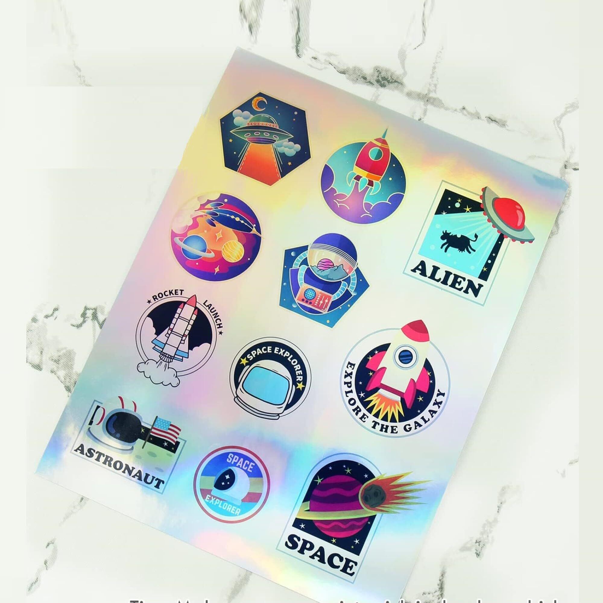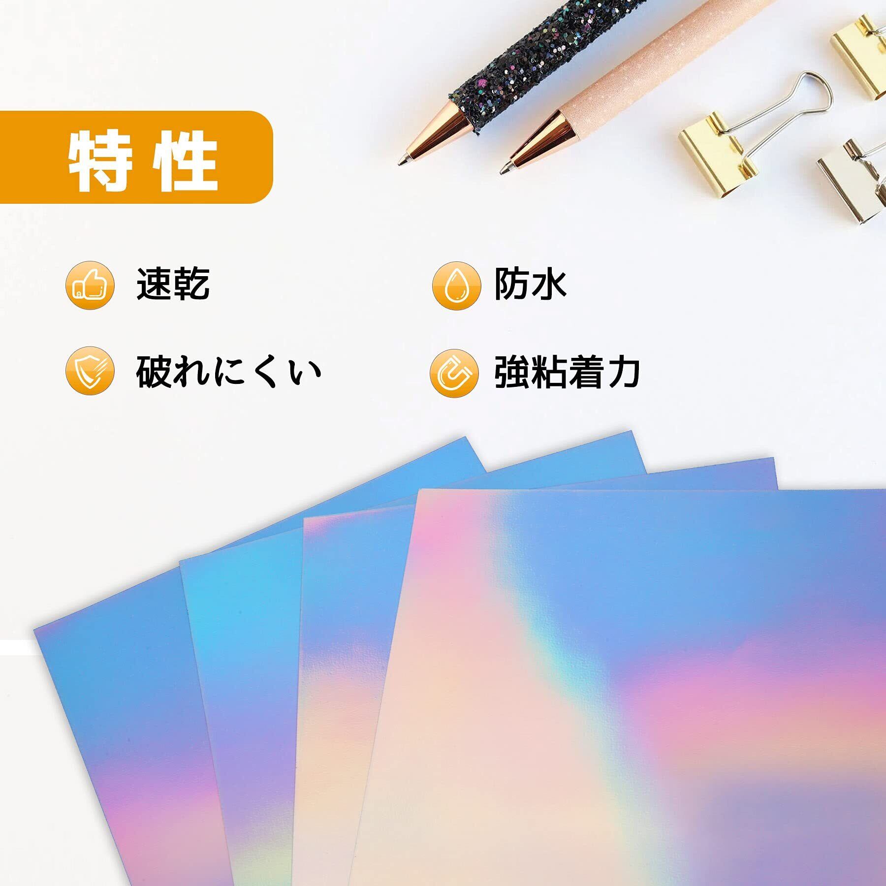 特性:シールは美しいホログラム効果があり、光や角度によって色が変わります。防水性あるビニールシールにより、文字や画像が濡れてもにじまない、速乾、きれいな光沢。