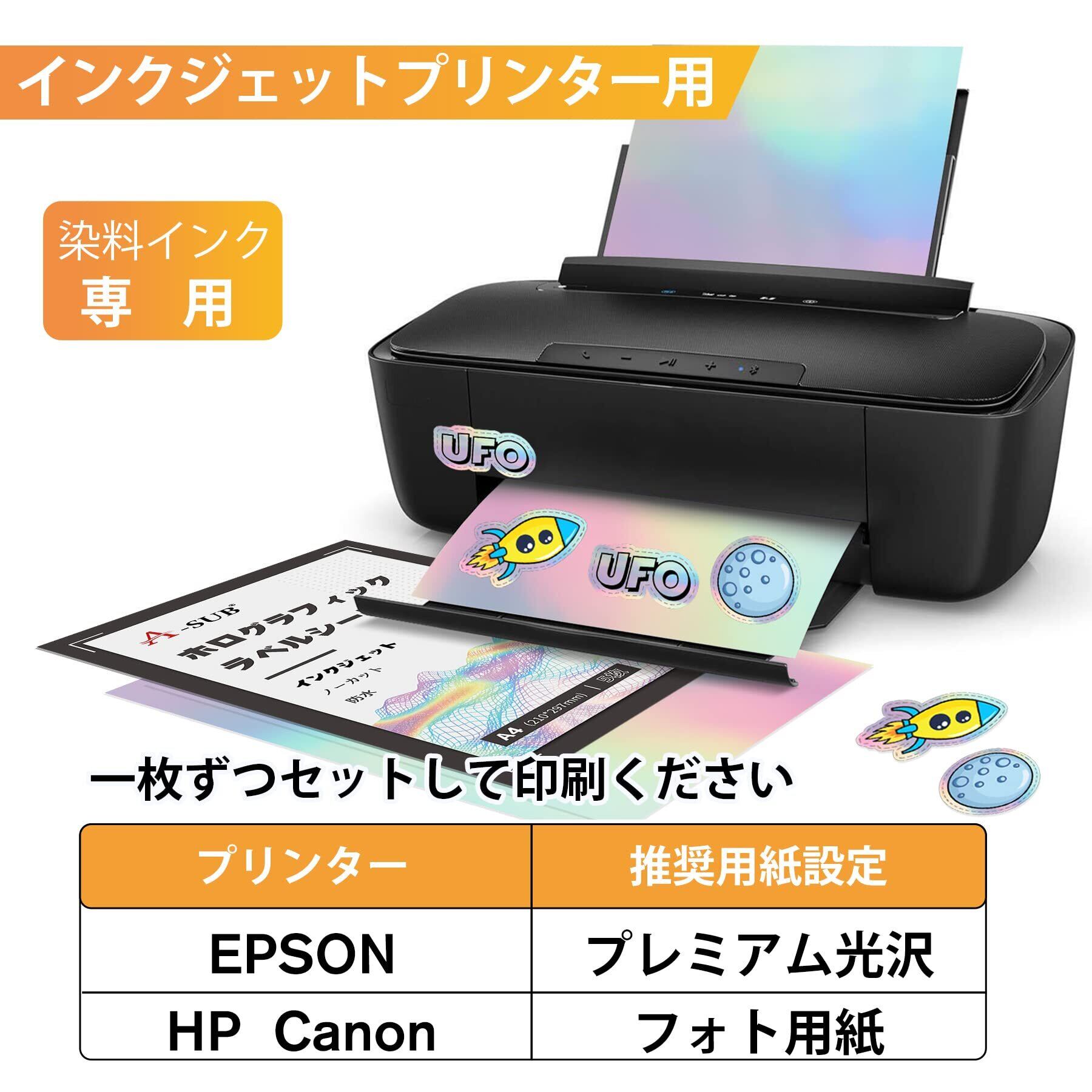 対応プリンター:A4-5枚、インクジェットプリンターに対応、染料インク専用。平で紙つまりがない、好きなデザインを印刷しましょう!