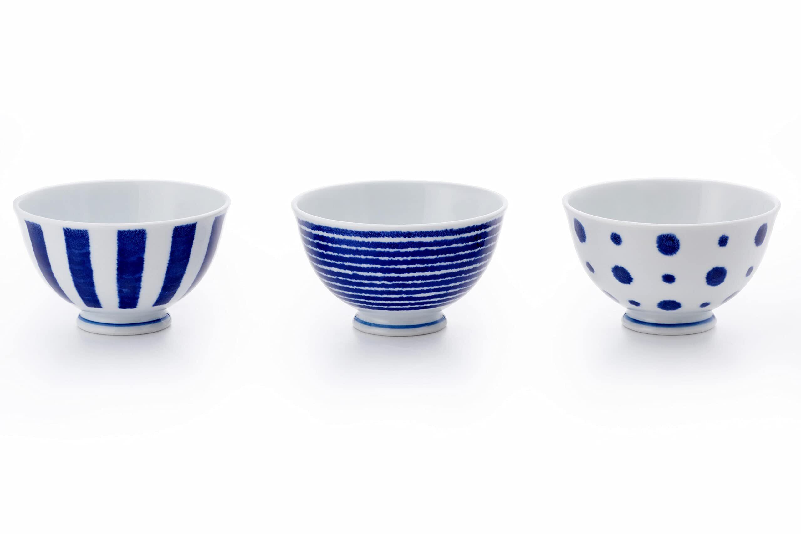 西海陶器(Saikaitoki) 茶碗 お茶碗 飯碗 食器 セット 3個 indigo 藍玉軽量飯碗(3柄組)