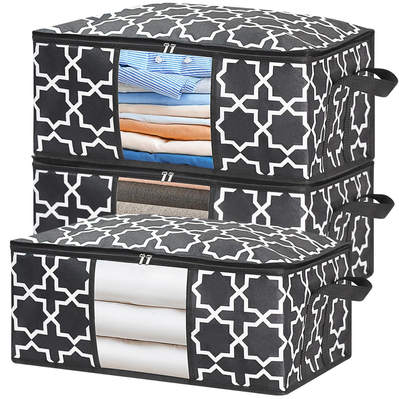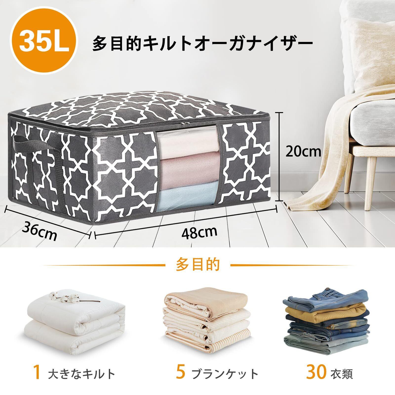 【2022最新】LHZK 布団収納袋 3点セット 持ち手とファスナー付き 布団袋 折りたたみ式 透明窓付き 羽毛布団 収納袋 衣類 毛布 収納 掛け布団 敷布団の収納に適しています 通気性が良い 省スペース 不織布製 無臭 防塵 防虫(48*36*20m, グレー) | gsmshop
